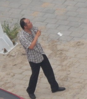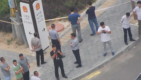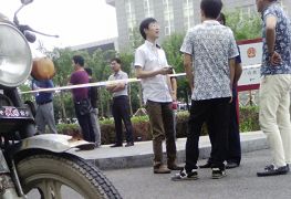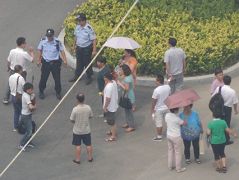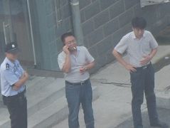 国保副大队长贾志学,在下午开庭前,到现场声援民众周围转一圈,仔细辨认大法学员,查看人数。