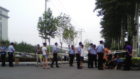 早晨开庭前警察把法院团团围住,法院周围拉着双层警戒线,律师们和家属走到法院门口被警察强行拦住,说奉上级命令,不得让任何人进入。董律师和他们说:“我们就是今天开庭的律师和当事人。”警察仍然蛮横的说:“奉命谁都不让进,你们给里面打电话,让他们出来接。”