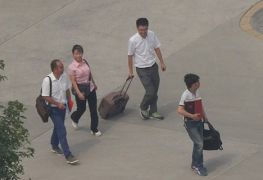 乔春江(中间穿白半袖手捂嘴者)、曹爱博(拿录像机一身黑)、小胖子(拿录像机白背心)、司机(左一)