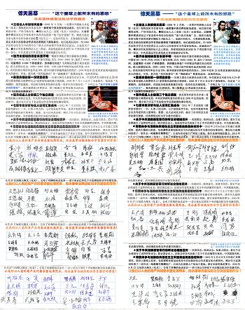 老板惊喜地望着我,片刻后感叹:“你们真是在为民除害。江泽民在位就迫害法轮功,养了一帮一帮的贪官,没干一件好事。早该抓他了!”