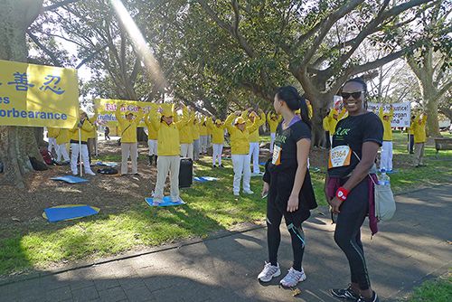 有些观众路径法轮功学员摊位时,看到法轮功学员在祥和的打坐,他们也坐下来参与打坐,并表示能量场很强,令人感觉非常舒服。在悉尼商务楼工作的商务分析师约书亚(Joshua)打坐片刻后表示非常放松和愉悦,他表示:我感觉(和你们一起打坐)很棒,使我感觉放松。