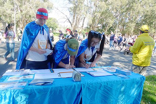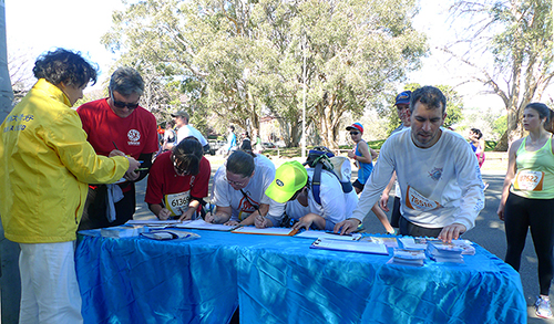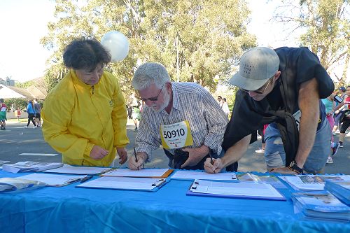 ![]() 图8-11:了解真相的马拉松参赛者纷纷签名支持制止中共活摘法轮功学员器官和制止迫害。 |