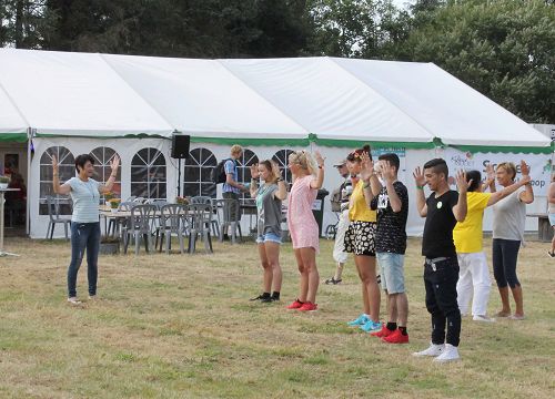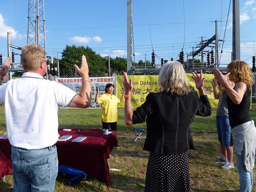 三天的活动,法轮功的展台很受人们欢迎,不少人前来不仅拿了真相资料,了解了大法真相,有的还买了法轮功的书籍之一《法轮功》,学炼功法者也络绎不绝,从小学生到成年人,从西人到华人。一位华人女士了解法轮大法真相后,当场要学员教会她五套功法。一群成年人学了第一和第二套功法,他们感到很放松、很祥和,感觉“太好了!”