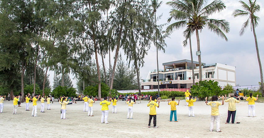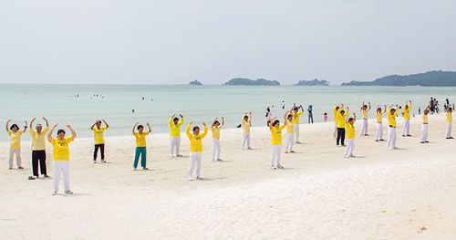 ![]() 法轮功学员在民丹岛拉够易海湾集体炼功 |