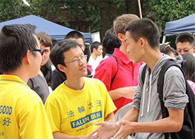 八月二十三日,美国伊利诺伊大学香槟分校举办了社团招新活动,许多中国学生惊讶的看到了校内的法轮大法社团。