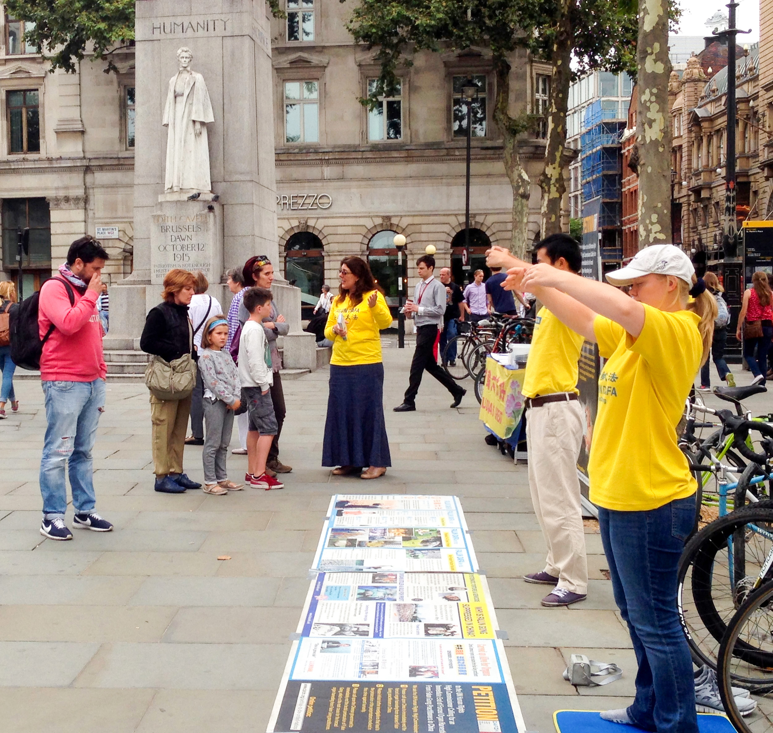 ![]() 八月二十九日,法轮功学员在伦敦圣马丁广场举办讲真相活动 |