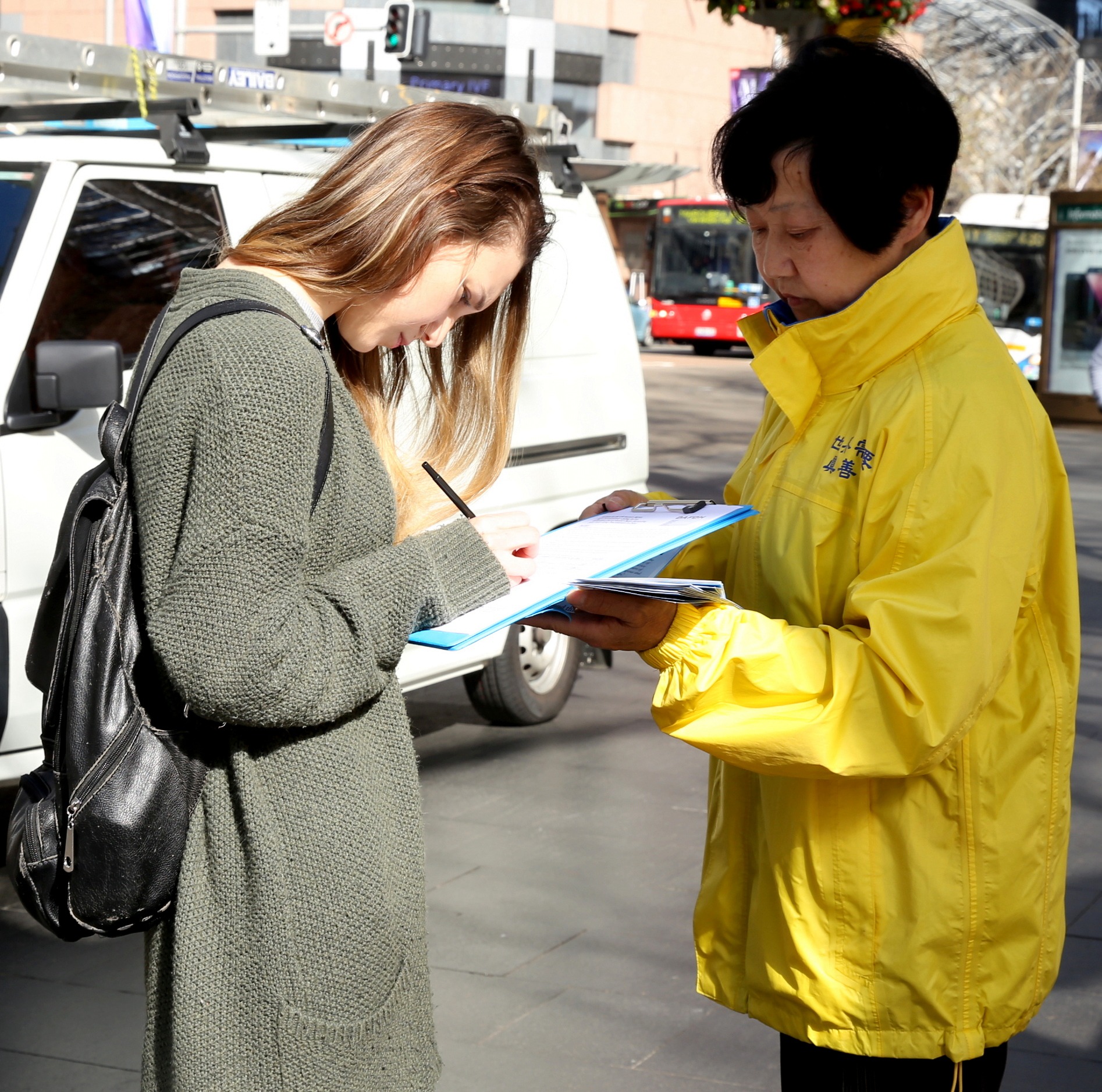 图2:明白真相的澳洲百姓签名制止中共非法活体摘取法轮功学员器官罪行