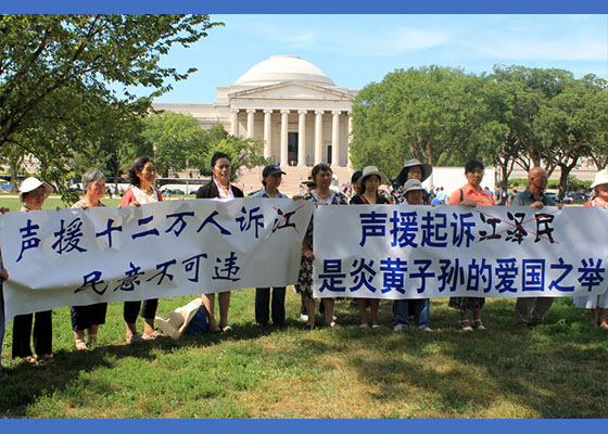 - 诉江民众逾十二万 美国首都集会声援(图)- 八月二日下午,美国大华府地区部分法轮功学员汇集在位于首都华盛顿特区的国家大草坪上集会,声援中国大陆诉江大潮。