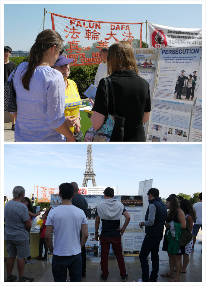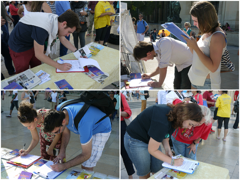 医学毕业生雅克和奥利维正在实习阶段,他们经过人权广场,得知中共盗取和贩卖法轮功学员器官,无法接受这一骇人听闻的事实,他们在征签表上签字,希望早日停止迫害。并表示要把这一真相告诉他们的同学和同事,最后他们说,他们的心和法轮功在一起。