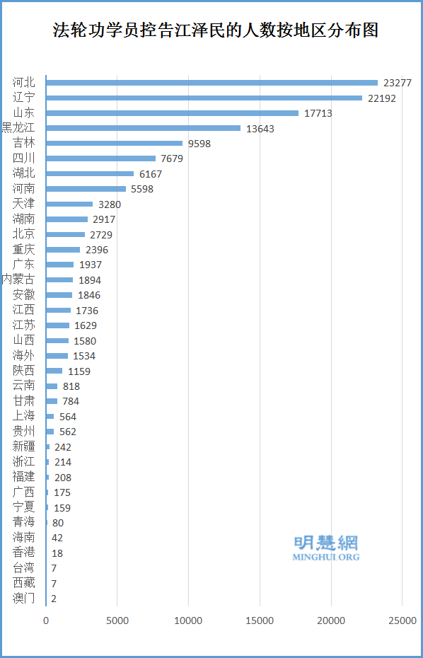 ![]() 图2:控告江泽民人数按地区分布图 |