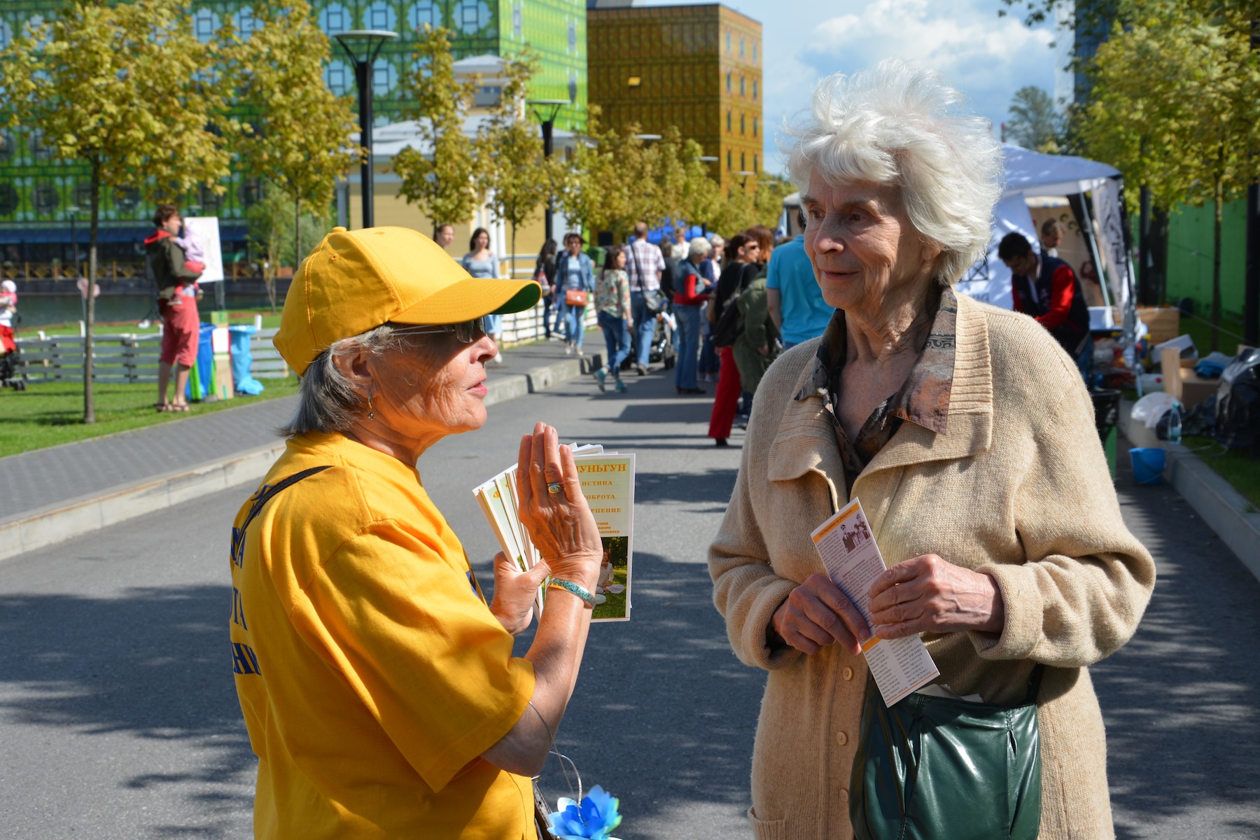 许多与法轮功学员交谈的老年人谈到自己的疾病等麻烦,他们特别赞同法轮功学员所说的,要积极提升自己,更加宽容别人,以及不要向外边找别人的不对,而应该找自己的失误和不足。
