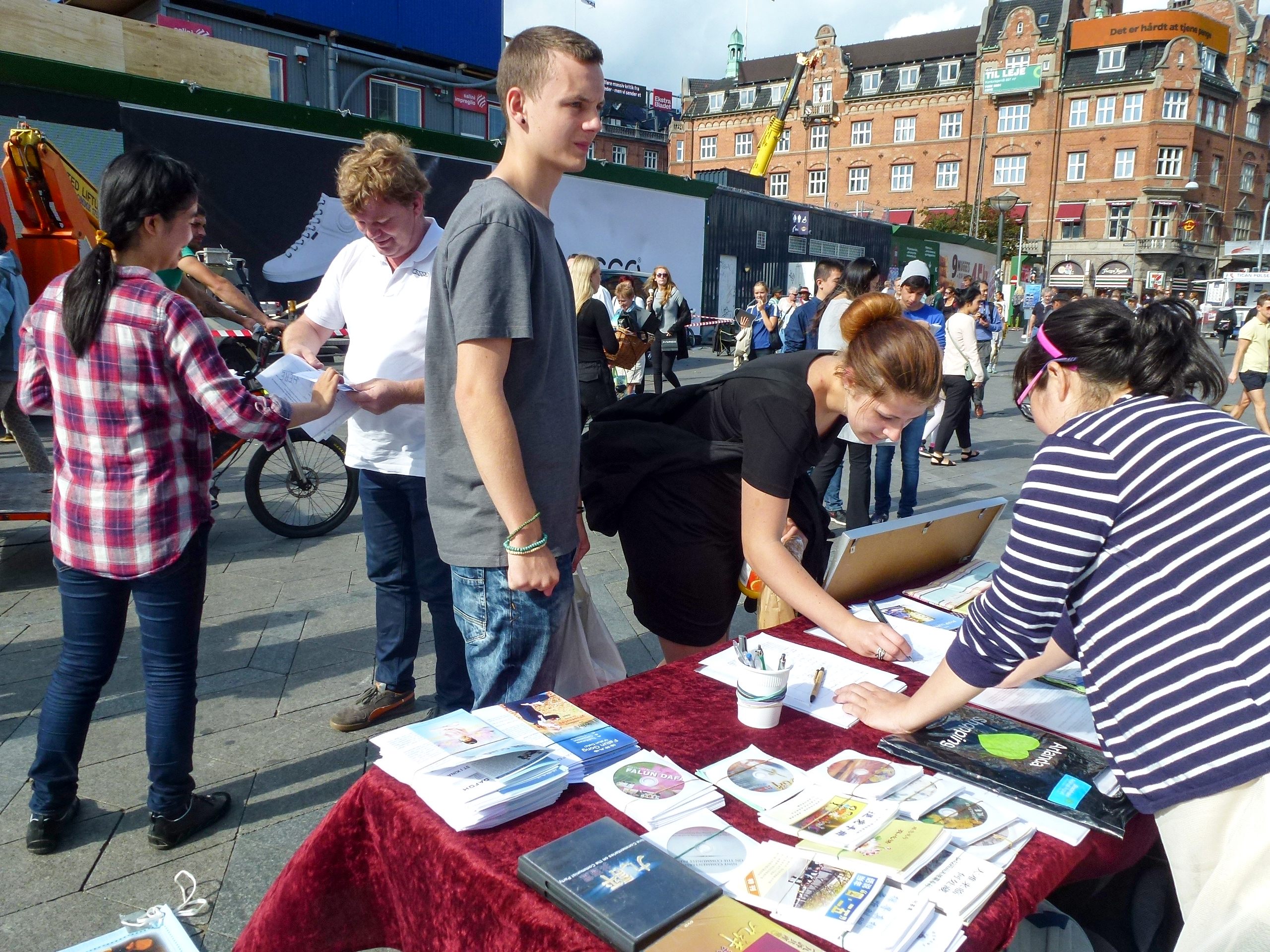 【明慧网二零一五年九月一日】(明慧记者舒慧丹麦报道)二零一五年八月二十九日下午,法轮功学员在丹麦首都哥本哈根市政厅广场,举办“刑事举报江泽民”征签活动,传播和声援“起诉江泽民”的大潮。