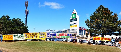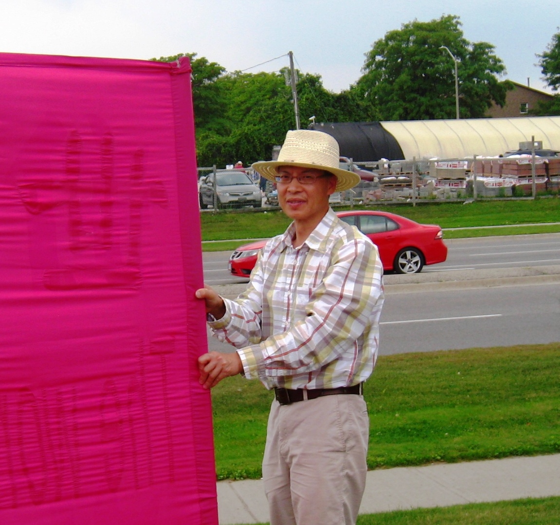 自己修炼法轮功,身心受益,再加上知道了发生在中国的迫害真相后,何先生很快走进了讲真相、反迫害的行列,他在处理好家庭和工作的同时,每个周末都到这里来坚持打横幅和讲真相,八年的坚持,他表示:只为人们能明真相,了解法轮大法的美好和迫害的残酷。