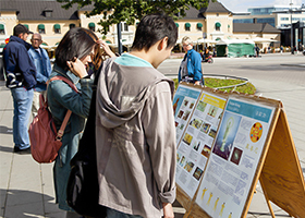 九月十二日上午,法轮功学员来到瑞典著名的大学城乌普萨拉市(Uppsala)参加这里一年一度的文化节活动。
