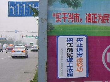南京市街头人们见到“全球起诉江泽民”、“全球控告江泽民”等真相标语。以无声的语言告诉迷中的人们,尽管法轮大法蒙冤十六载,修炼人的意志从未动摇。江氏集团的罪恶即将被清算,江泽民即被来自世界各地的人起诉。还法轮大法清白的一天即将来到。