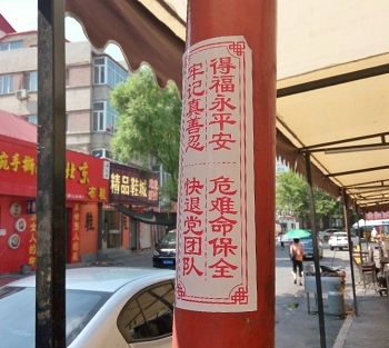 9月15日上午,诸城市皇华镇派出所警察以诉江为由,到魏家沟村绑架了正在上班的法轮功学员梁瑞湘并非法抄家,到朱泮村骚扰法轮功学员梁瑞美,抢走mp3、录音机、还有一些真相币,详情待查。