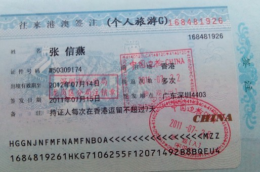 第二天(二零一一年八月二十六日),我先生和我一起去向深圳当地公安局申请探亲证,结果当地公安局以我在法轮功学员“黑名单”上不批,并把我前些天刚申请好的一年有效来回的香港旅游证件港澳通行证也盖章取消了,有意让我去不了香港。后来我去深圳市局上访办公室请求通融一下,他们说杀人放火可以通融,就是法轮功学员不可以通融,叫嚣不写所谓“三书”、不“转化”,“你永远也不能回香港的家!”
