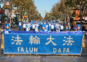 - 美国硅谷历史小镇游行 主办方盛赞法轮功团体(图)- 九月十九日上午,美国加州圣荷西小城Willow Glen市举行建市纪念游行。法轮功美西天国乐团参加了游行,受到主办方和观众的热烈欢迎。