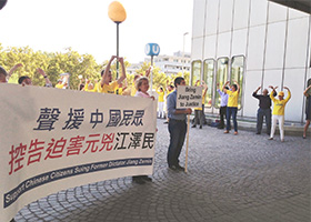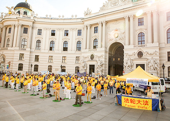 - 维也纳联邦总统府前举办声援诉江集会- 九月十八日,来自欧洲三十个国家的部分法轮功学员聚集在奥地利首都维也纳霍夫堡王宫也是联邦总统府前的米歇尔广场,举办了声援全球诉江大潮的活动。