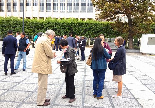 数日来,比利时法轮功学员在欧洲议会总部大楼前,向与会的各国医生与在此过往的各界人士,传播法轮功的真相,揭露中共的罪恶,并呼吁国际社会公开审判活摘法轮功学员器官的元凶。很多医生表示他们已经听说了在中国发生的活摘器官的罪恶。还有一些不了解此事的医生,围着学员询问迫害的事实,了解“活摘”真相。