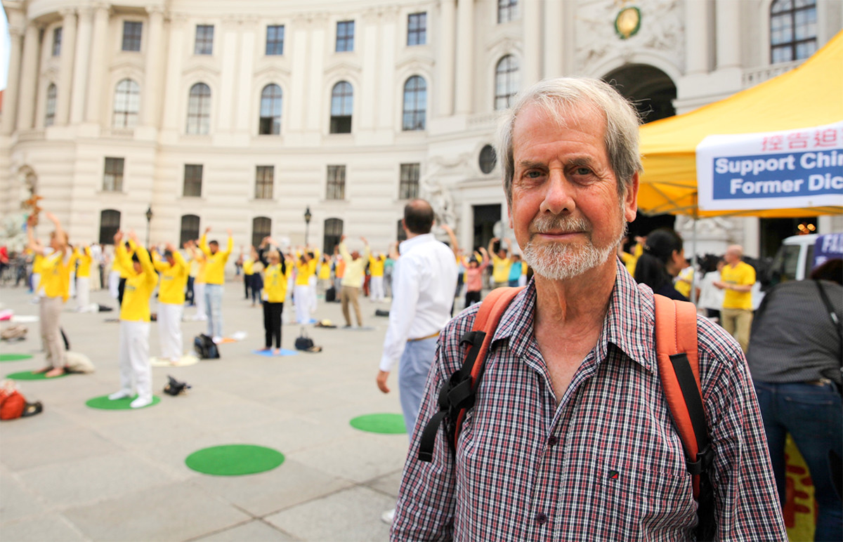 ![]() 图4:维也纳法轮功学员Patrick Arthofer希望能帮助人们了解法轮功被中共迫害的真相 |