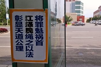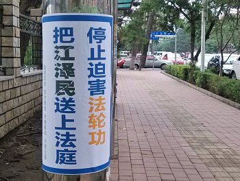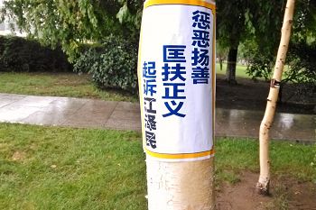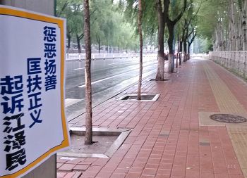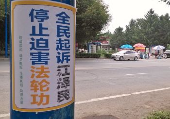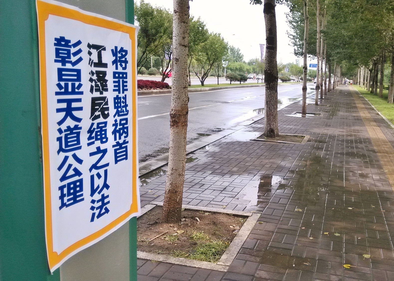 【明慧网二零一五年九月二十日】(明慧网通讯员长春报道)自二零一五年五月起诉江泽民大潮开启,已有逾十七万法轮功学员和他们的家人以真名实姓控告迫害法轮功的元凶江泽民。与此同时,长春的法轮功学员们也将这一信息通过不干胶、标语等形式向世人广为传播。