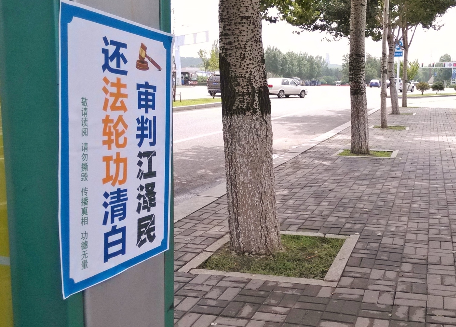 无论是远在城外的国家5A级净月潭风景区,还是近在城内的国家重点保护建筑物地质宫广场(曾经的千人炼功广场),还是公路、站点、林荫小路、广告牌匾,都可见到:“法轮大法好”、“真善忍好”、“起诉江泽民 正义必胜”、“将罪魁祸首江泽民绳之以法彰显天道公理”、“审判江泽民还法轮功清白”、“停止迫害法轮功把江泽民送上法庭”等真相标语。