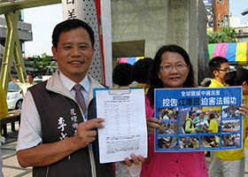 九月二十日,彰化地区法轮功学员在鹿港公会堂、彰化火车站举办真善忍国际美展的宣传活动,暨声援大陆诉江的联署举报江泽民征签。