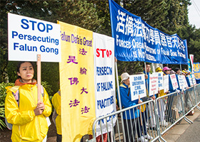 《西雅图时报》九月二十四日报道,在中共主席习近平访问西雅图期间,你到处可以看到法轮功学员。他们希望把江泽民绳之以法。