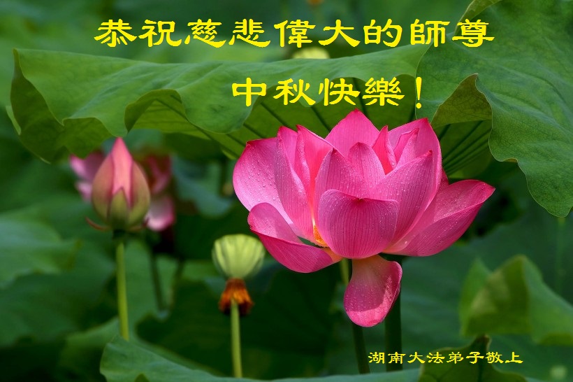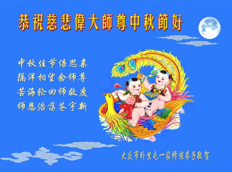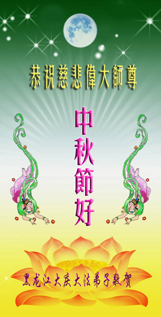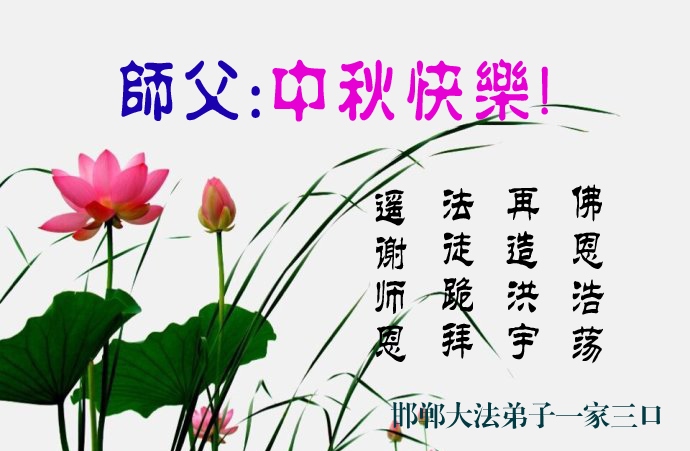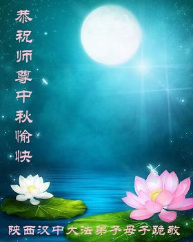 今逢中秋佳节之日,俩大法弟子和俩家人谨向慈悲伟大的李老师问好,叩谢!弟子一定学好法、修好自己、证实好法、多救众生。坚定正信,努力兑现自己史前的誓约。叩谢师尊的慈悲苦度!