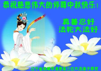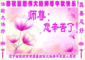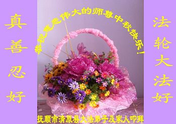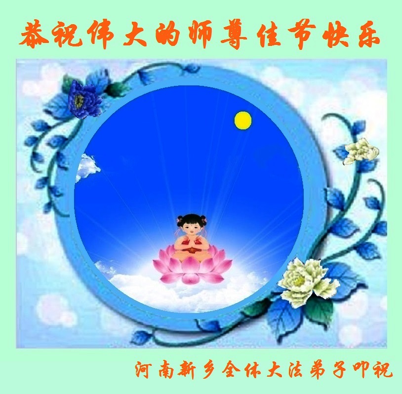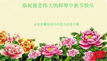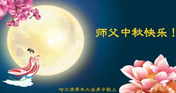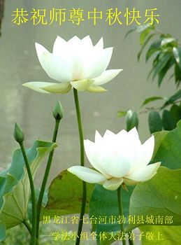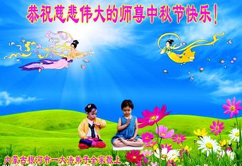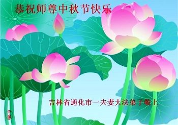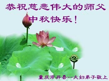 在此万分感谢李大师!感谢法轮大法!我一定牢牢记住“法轮大法好、真善忍好”,积极支持老伴修炼法轮功。法轮大法真神通,给了我一个健康的身体、幸福的生活、美好的家庭。谢谢法轮大法李大师,诚心敬祝李大师中秋节快乐!