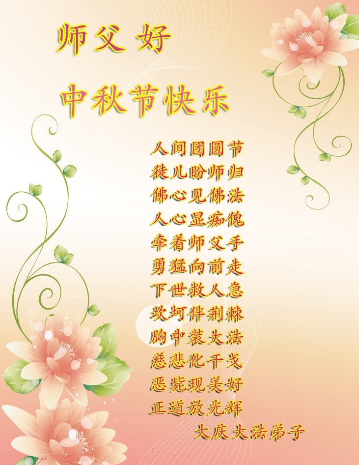<英文版: http://en.minghui.org/html/articles/2015/9/26/152698.html>教育系统大法弟子恭祝师尊中秋好(23条)