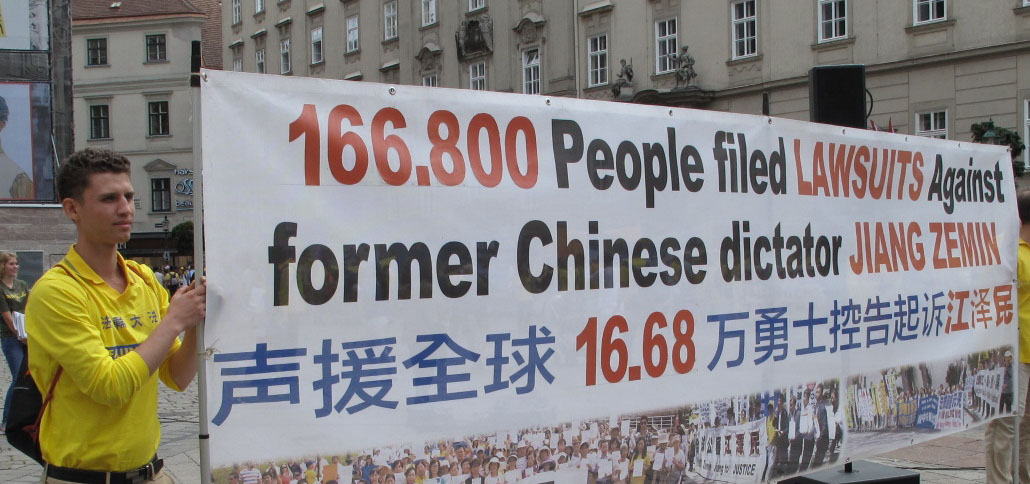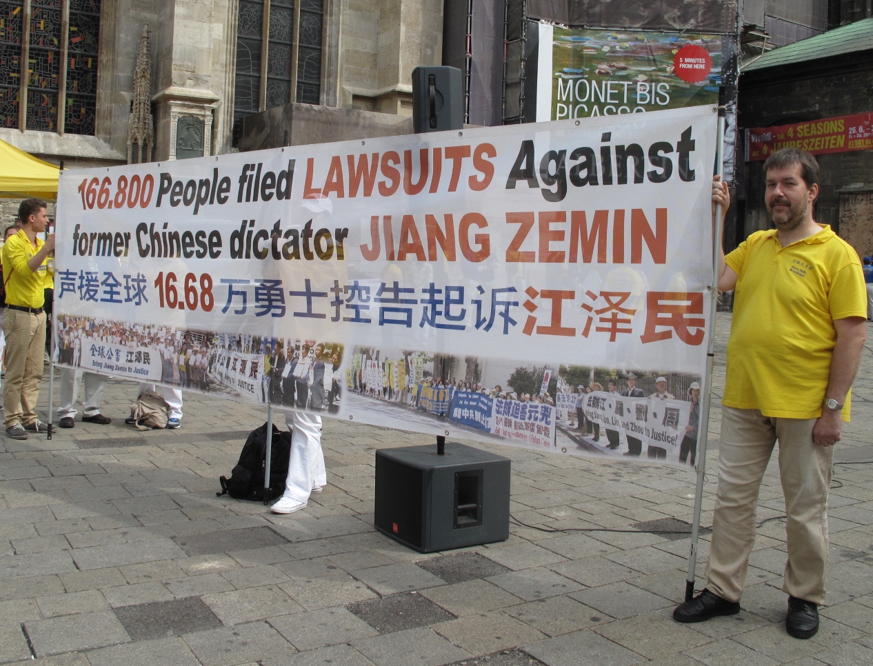 ![]() 图1:二零一五年九月十九日上午,欧洲法轮功学员在维也纳斯特凡大教堂前广场举行反迫害、声援全球控江集会 |