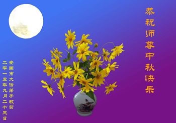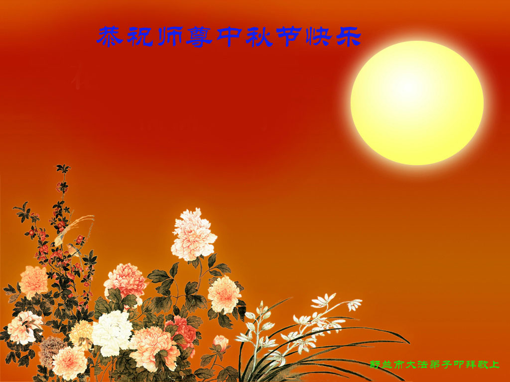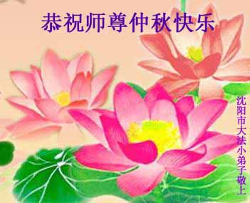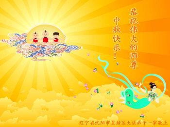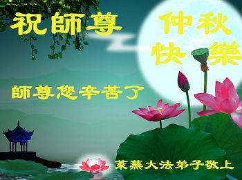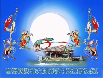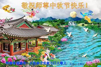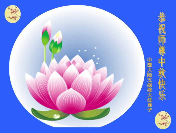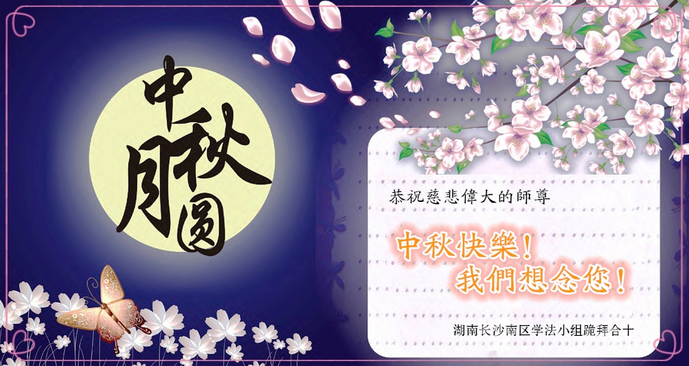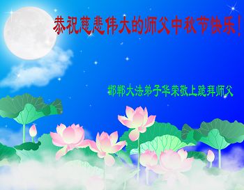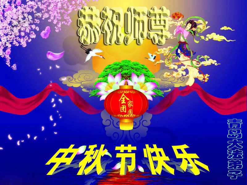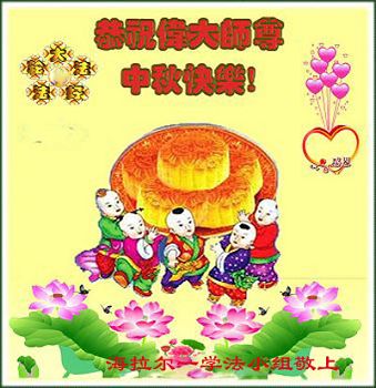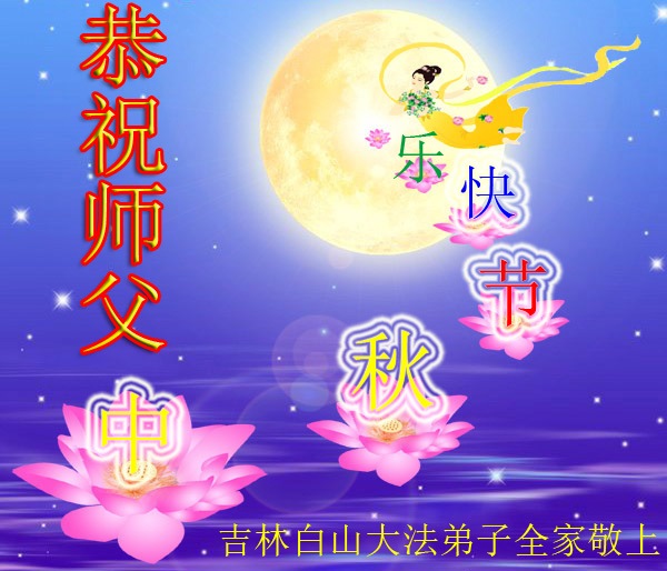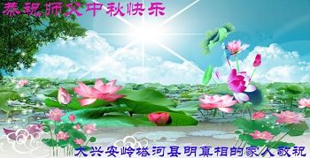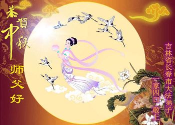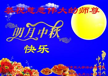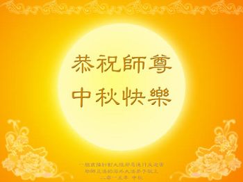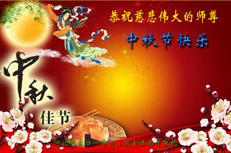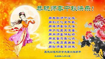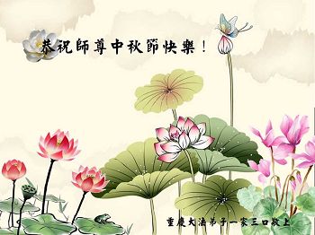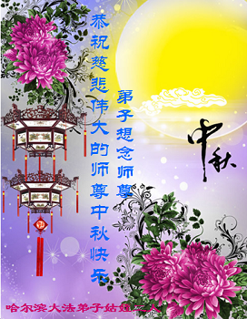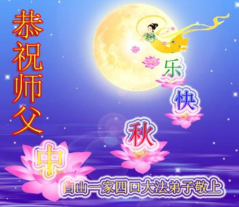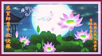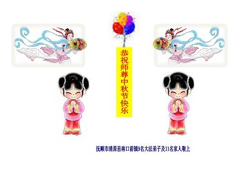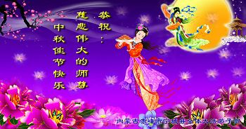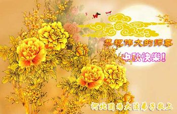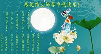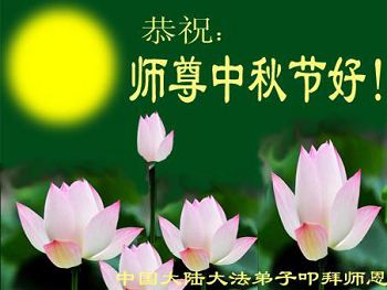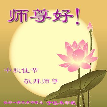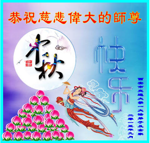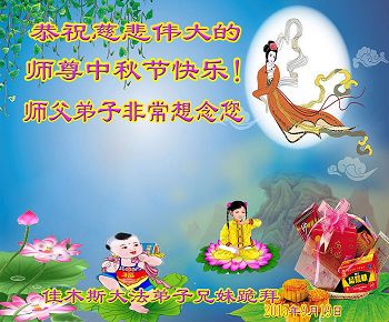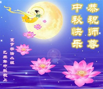 值此中秋佳节到来之际,我们向大法师父问好!盼望您早日回到中国,还大法和大法师父的清白!法轮大法好!真善忍好!