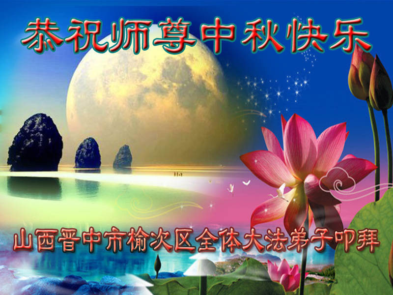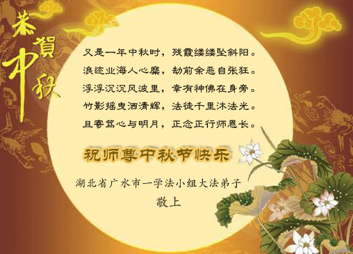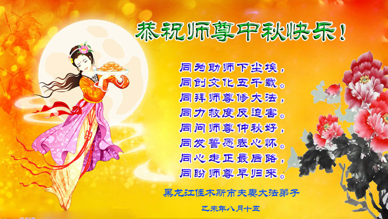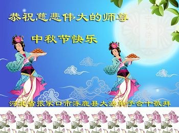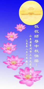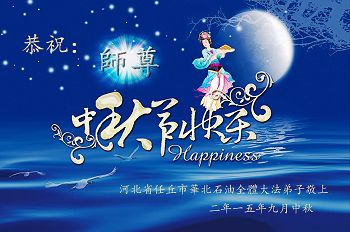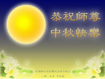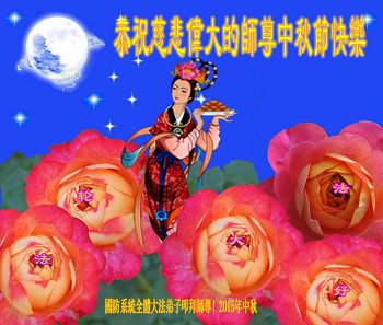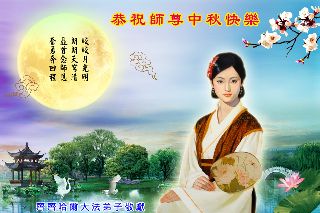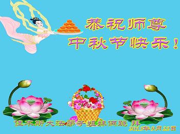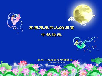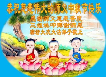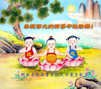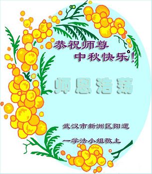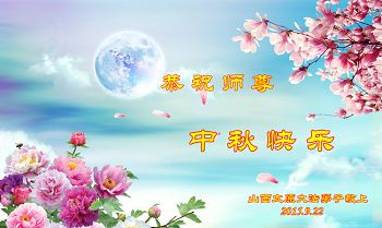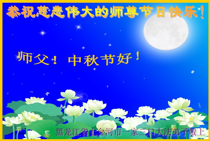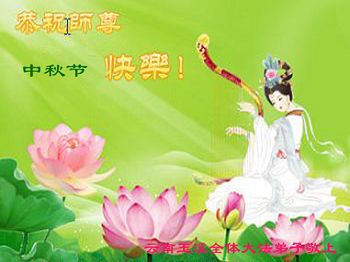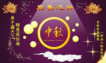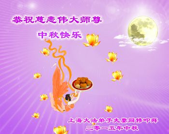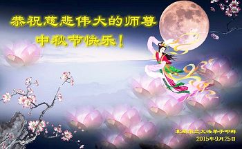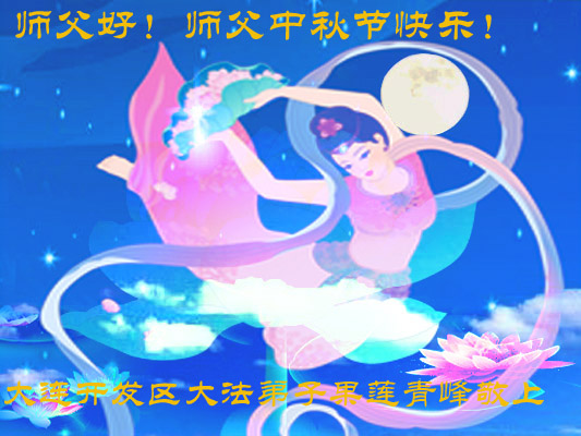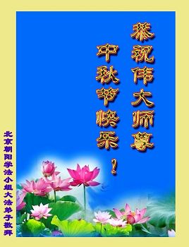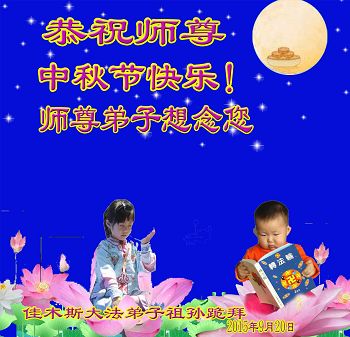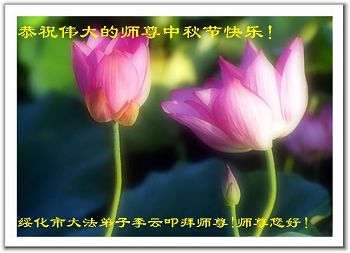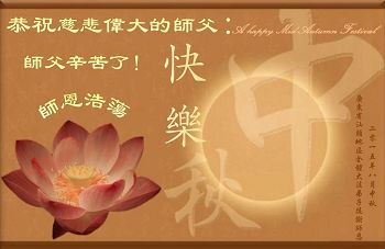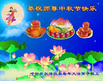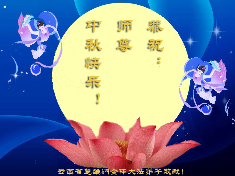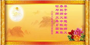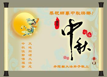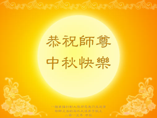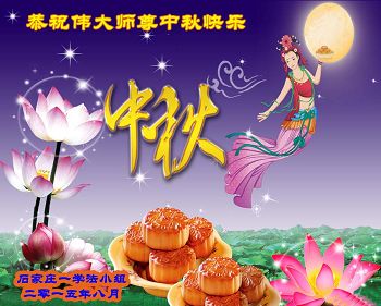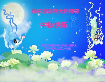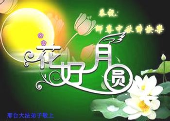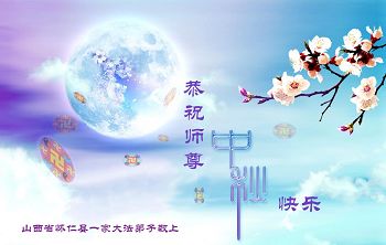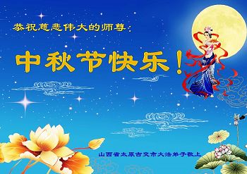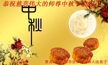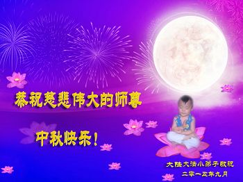 值此中秋佳节到来之际,我们向大法师父问好!盼望您早日回到中国,还大法和大法师父的清白!法轮大法好!真善忍好!