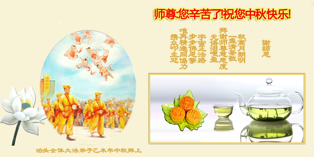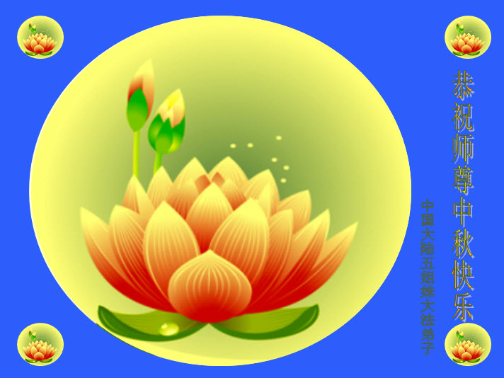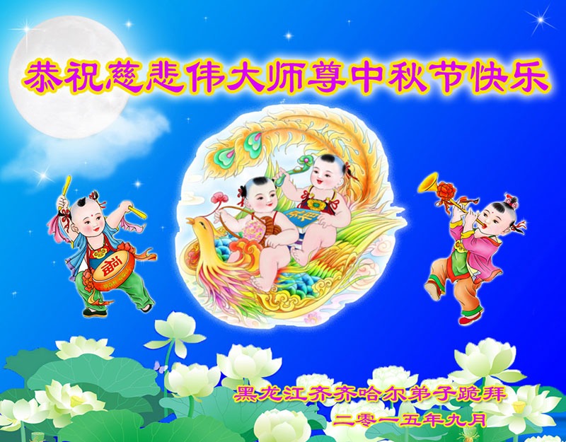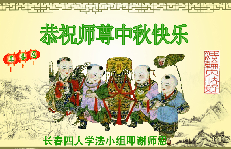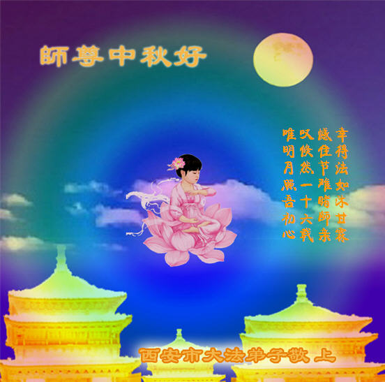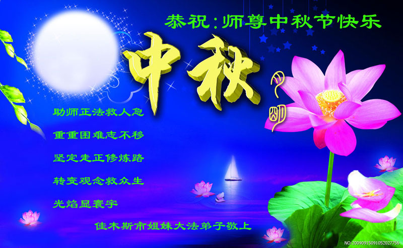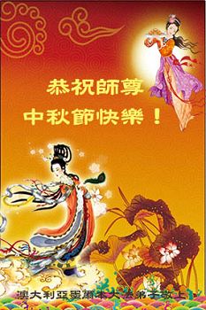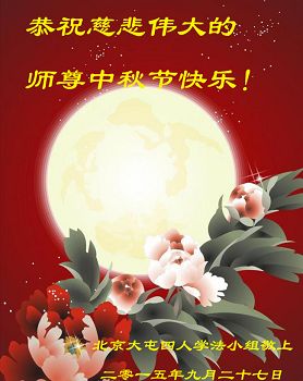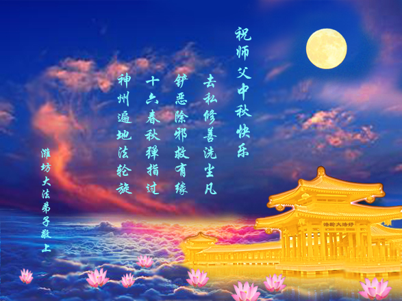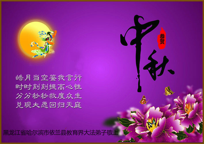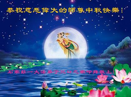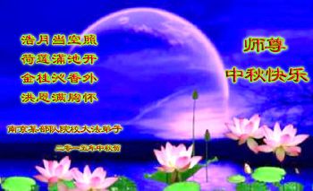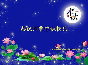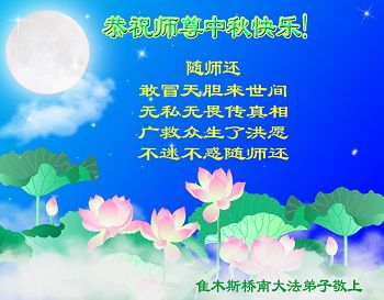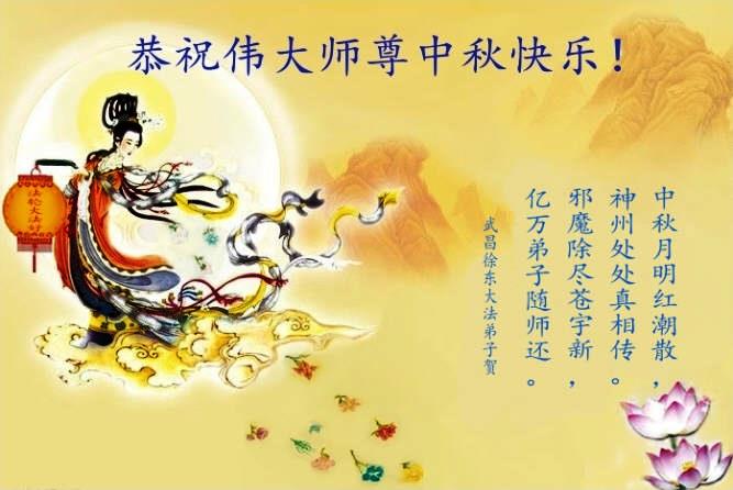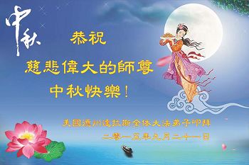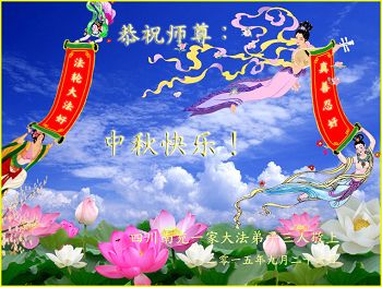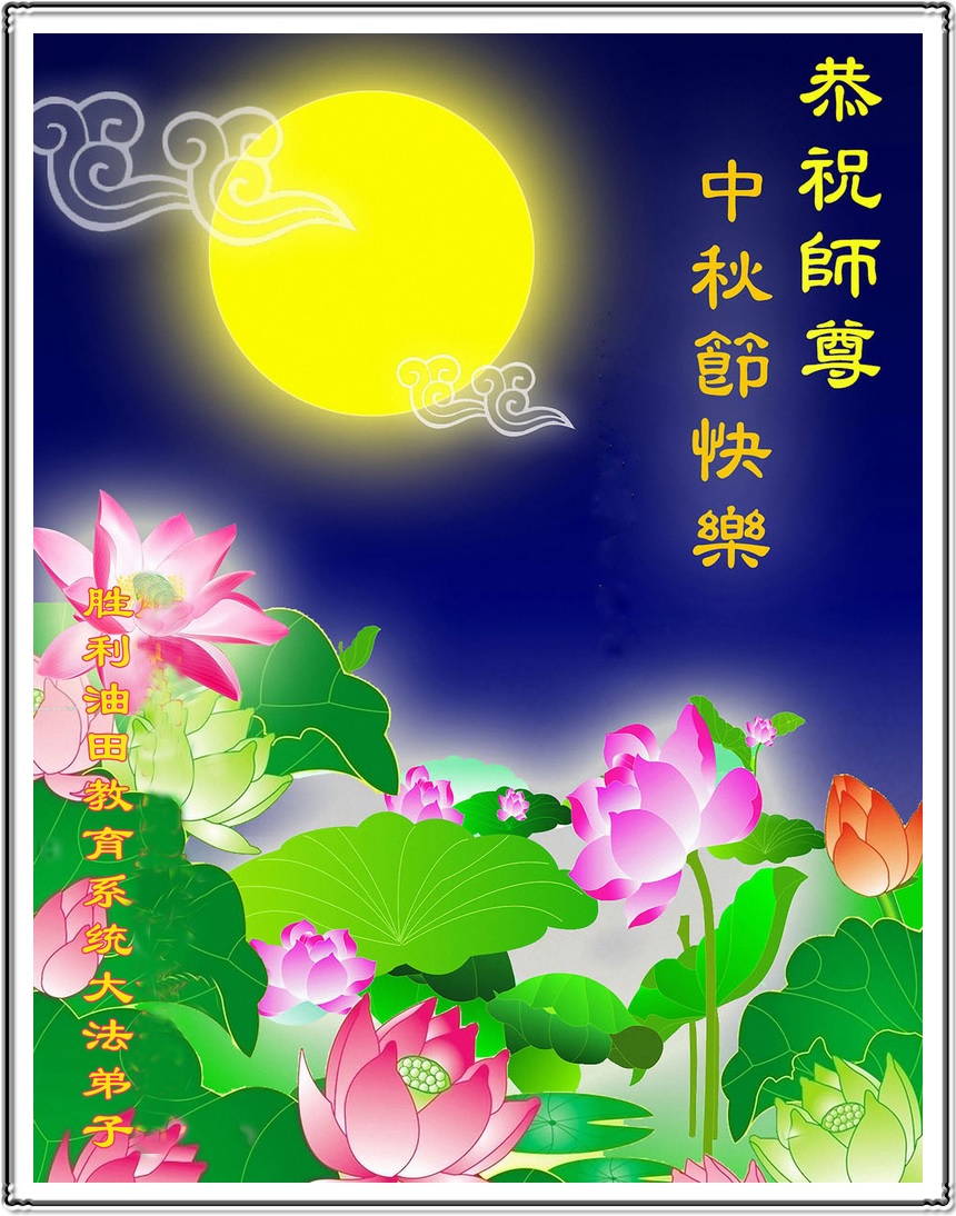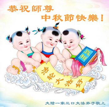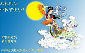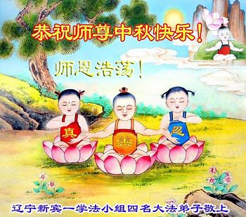 值此中秋佳节到来之际,我们向大法师父问好!盼望您早日回到中国,还大法和大法师父的清白!法轮大法好!真善忍好!