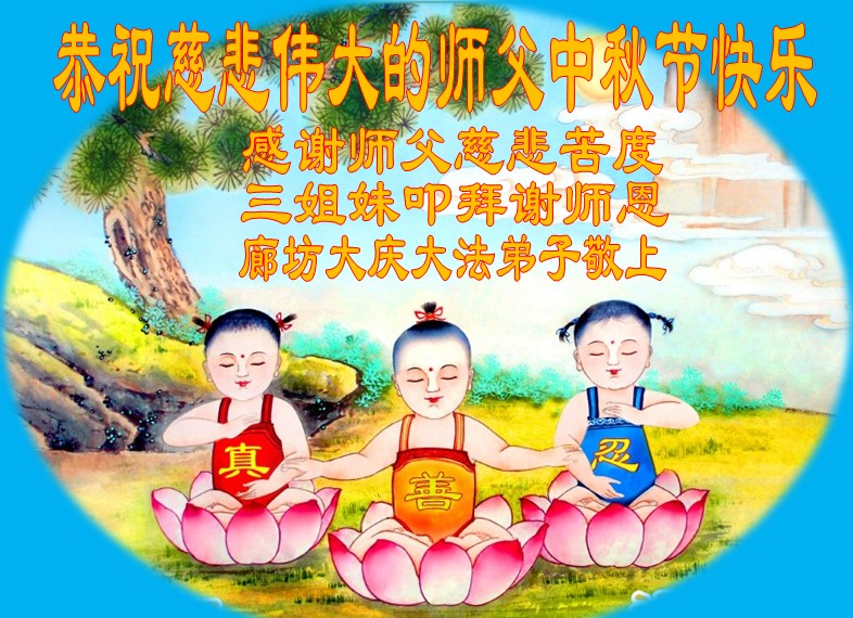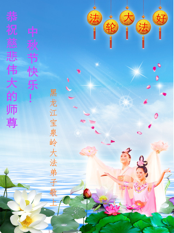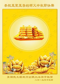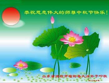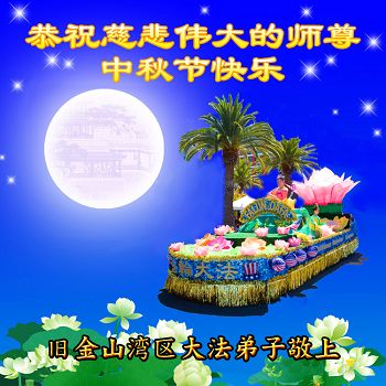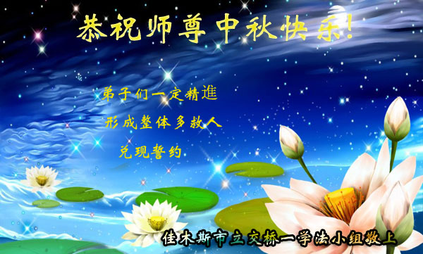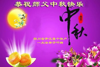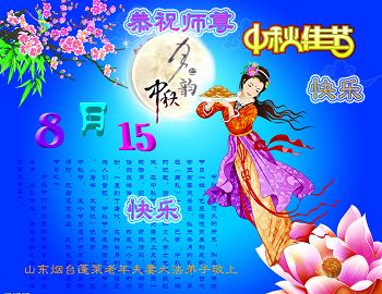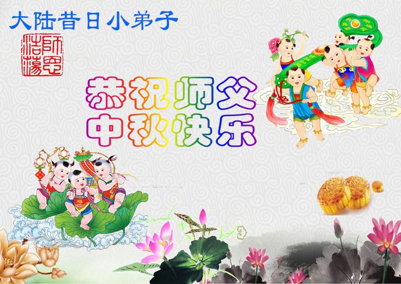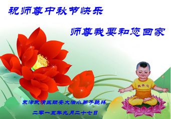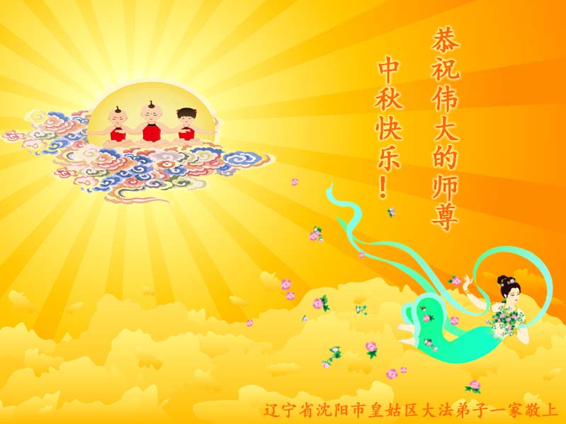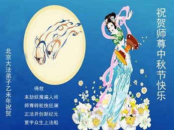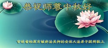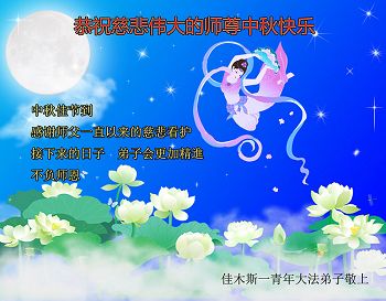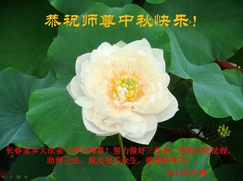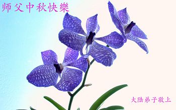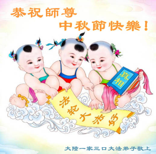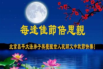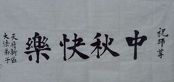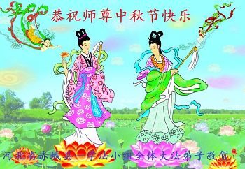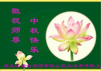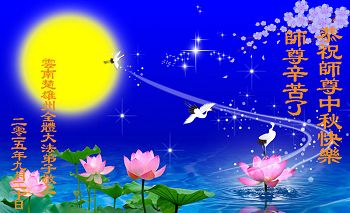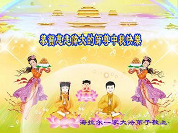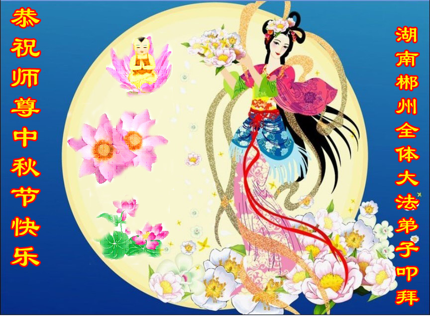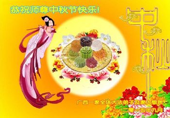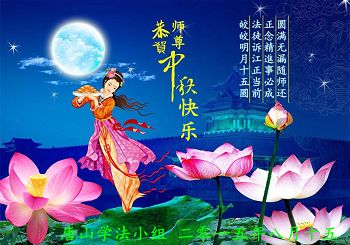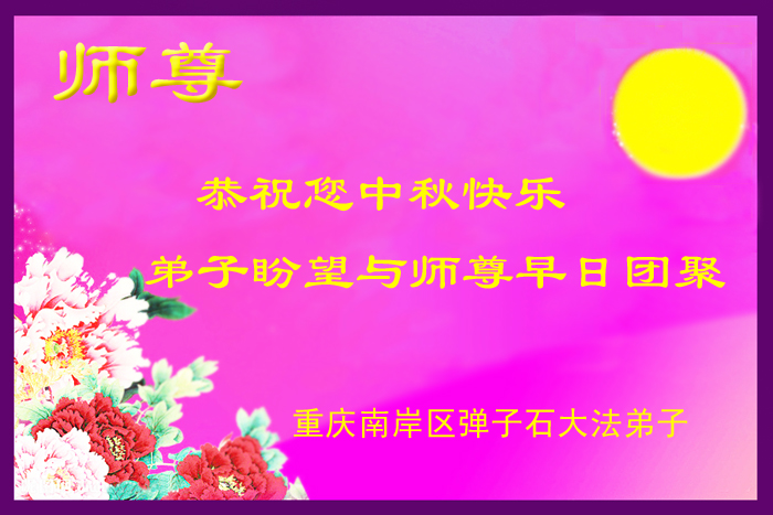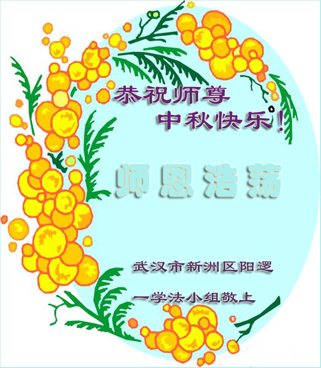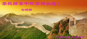 值此中秋佳节到来之际,我们向大法师父问好!盼望您早日回到中国,还大法和大法师父的清白!法轮大法好!真善忍好!