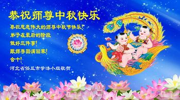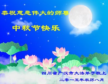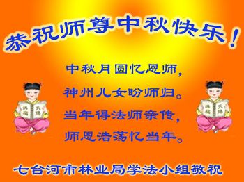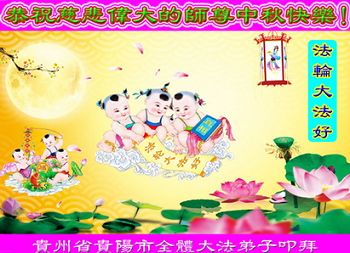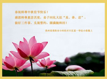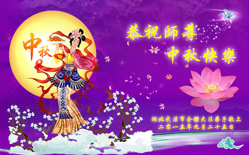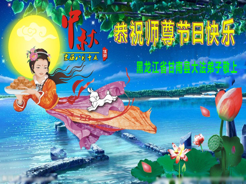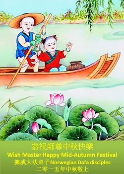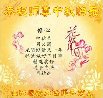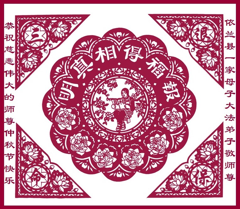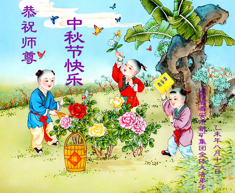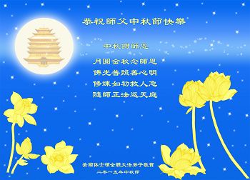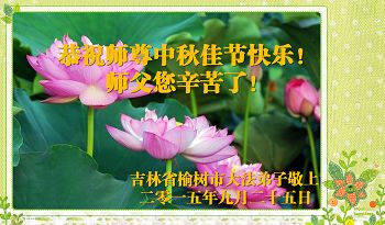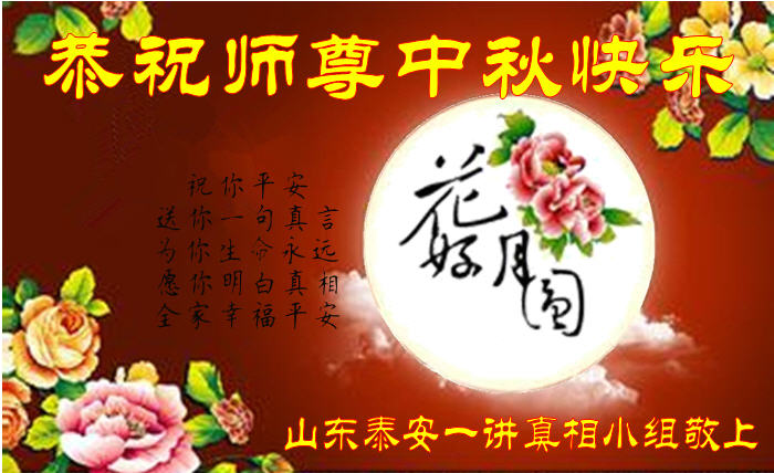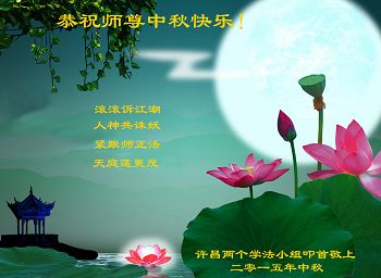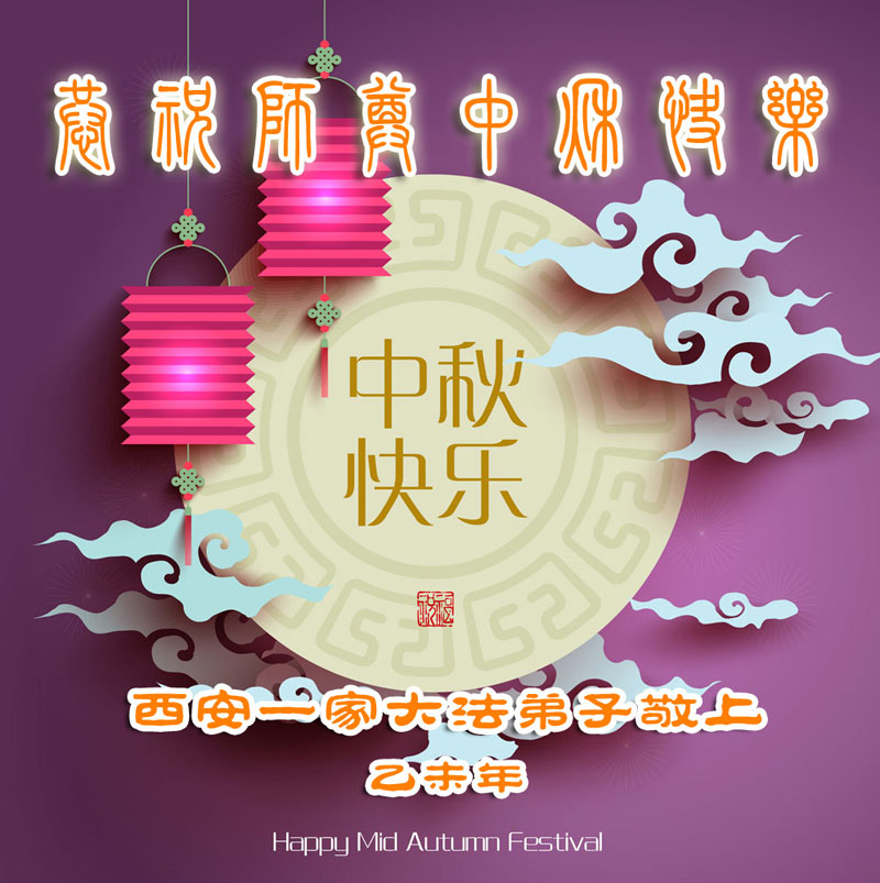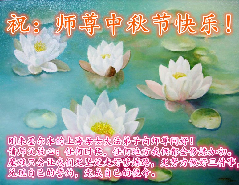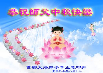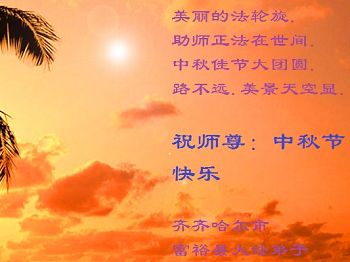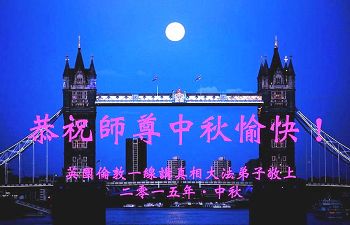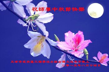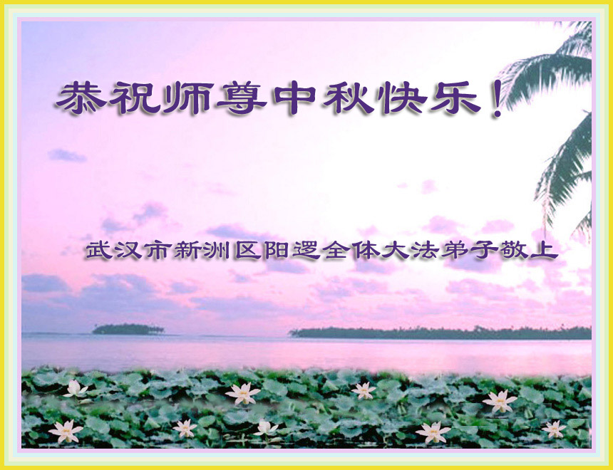 值此中秋佳节到来之际,我们向大法师父问好!盼望您早日回到中国,还大法和大法师父的清白!法轮大法好!真善忍好!