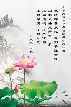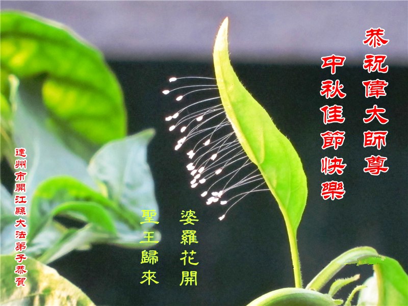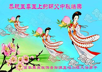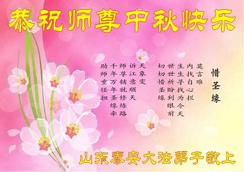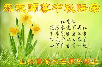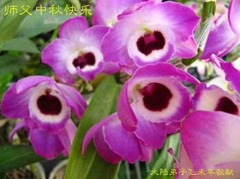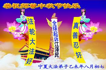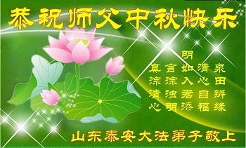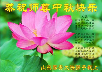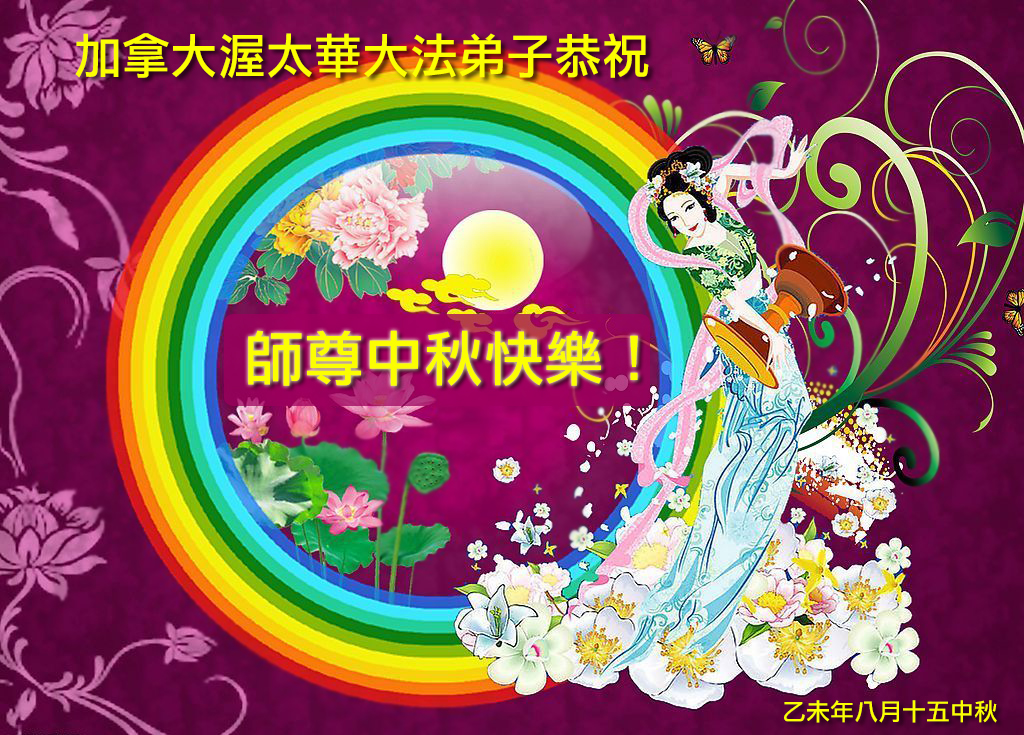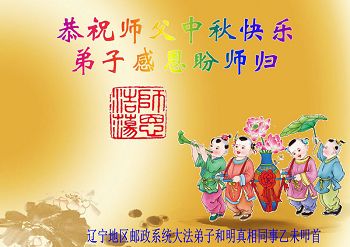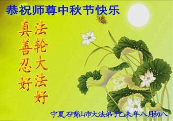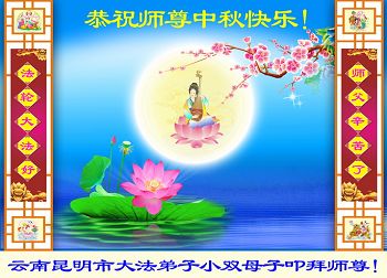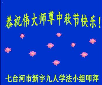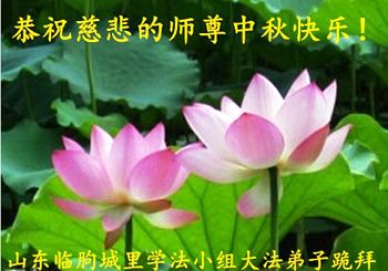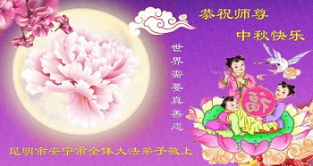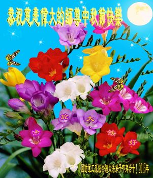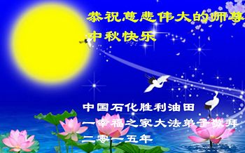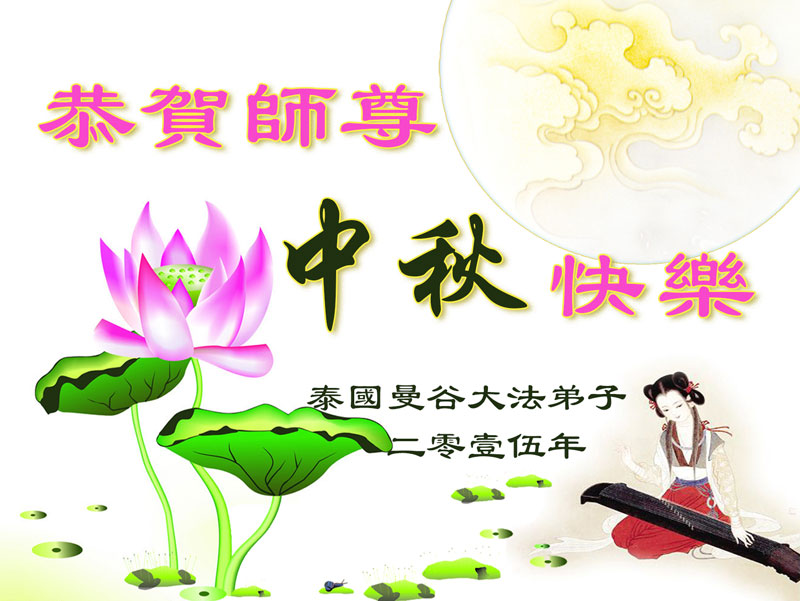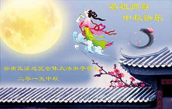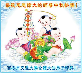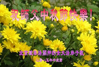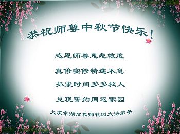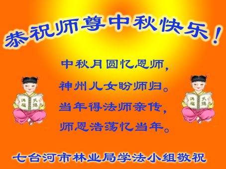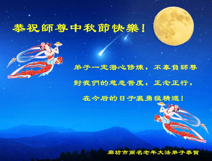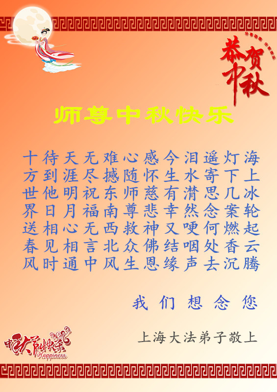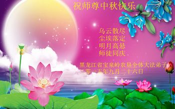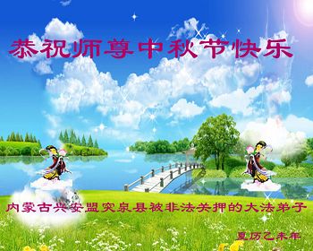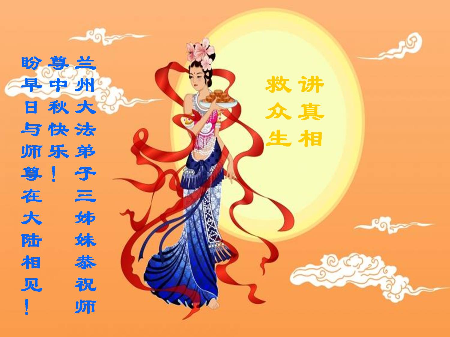 值此中秋佳节到来之际,我们向大法师父问好!盼望您早日回到中国,还大法和大法师父的清白!法轮大法好!真善忍好!