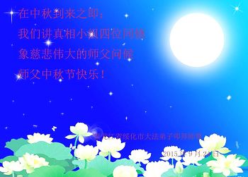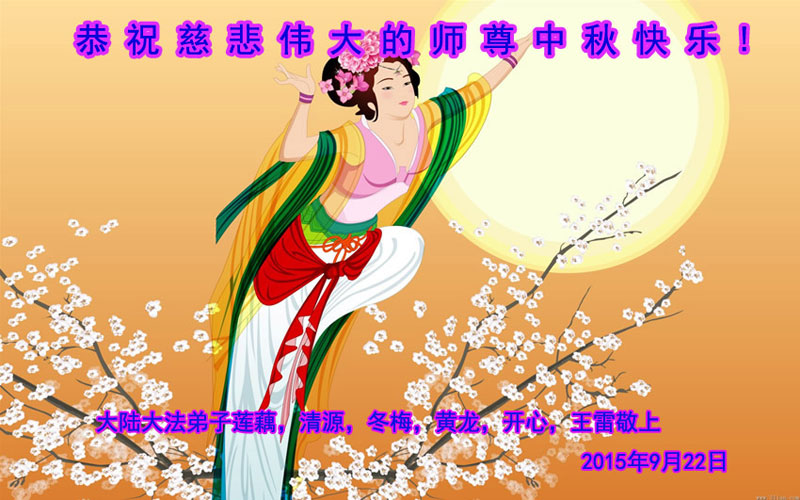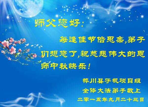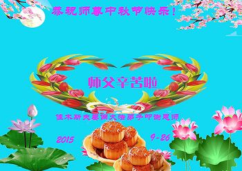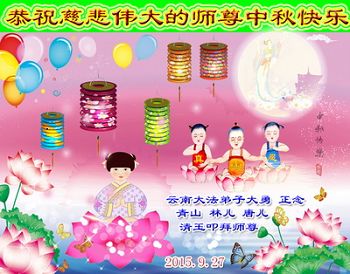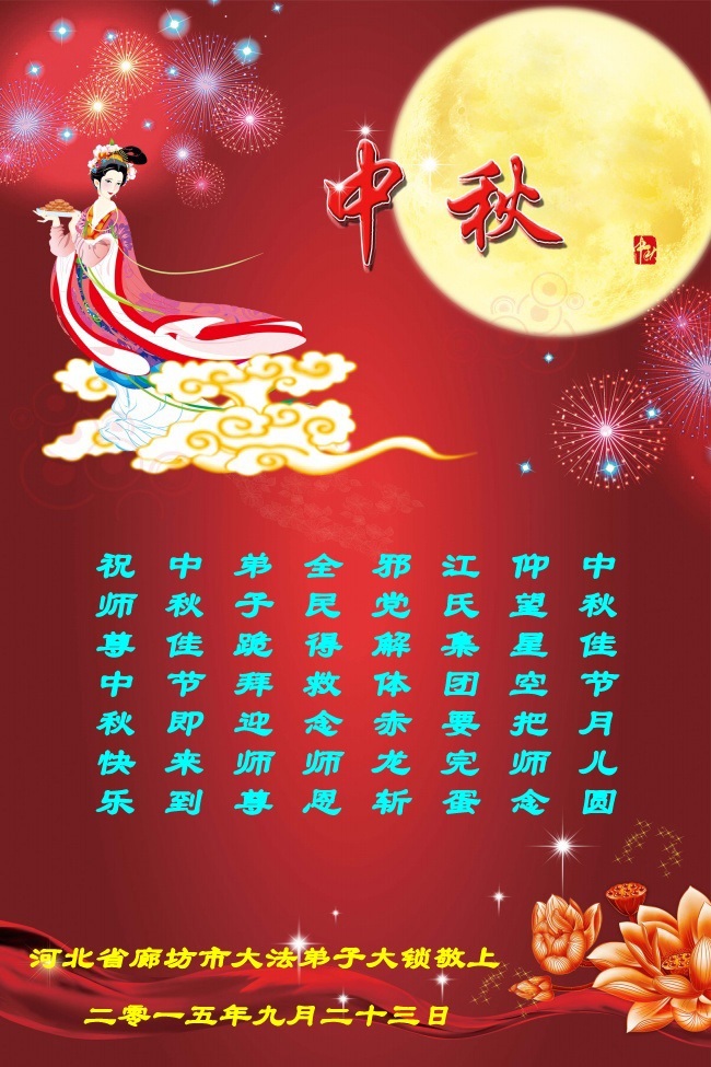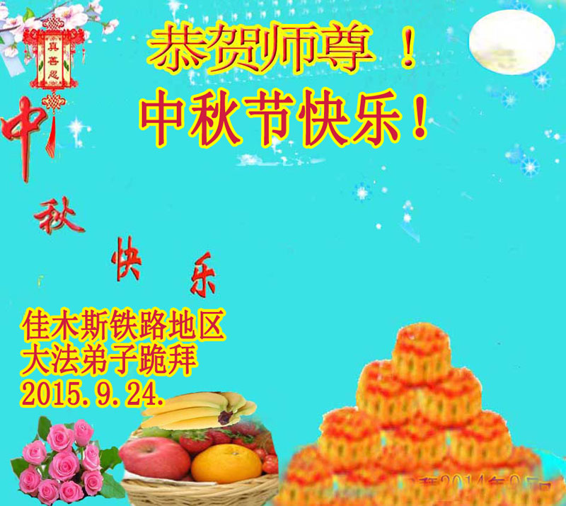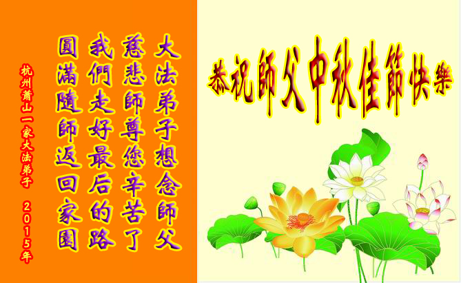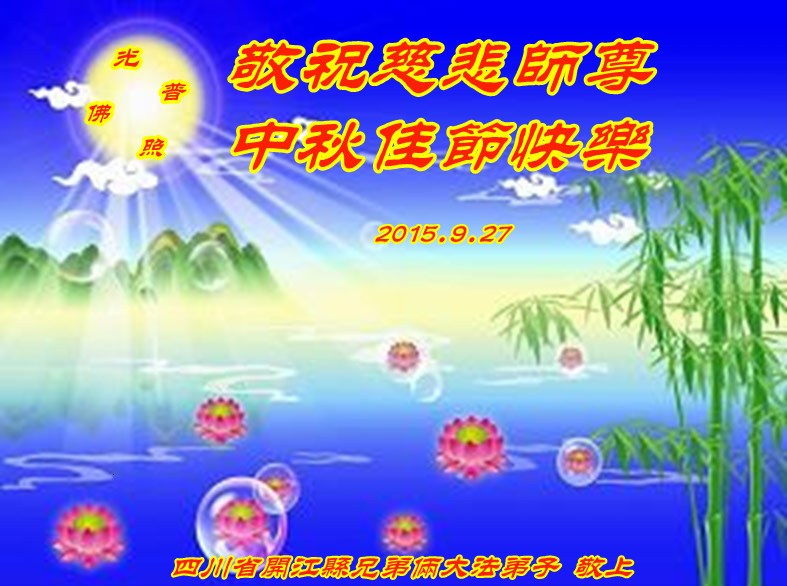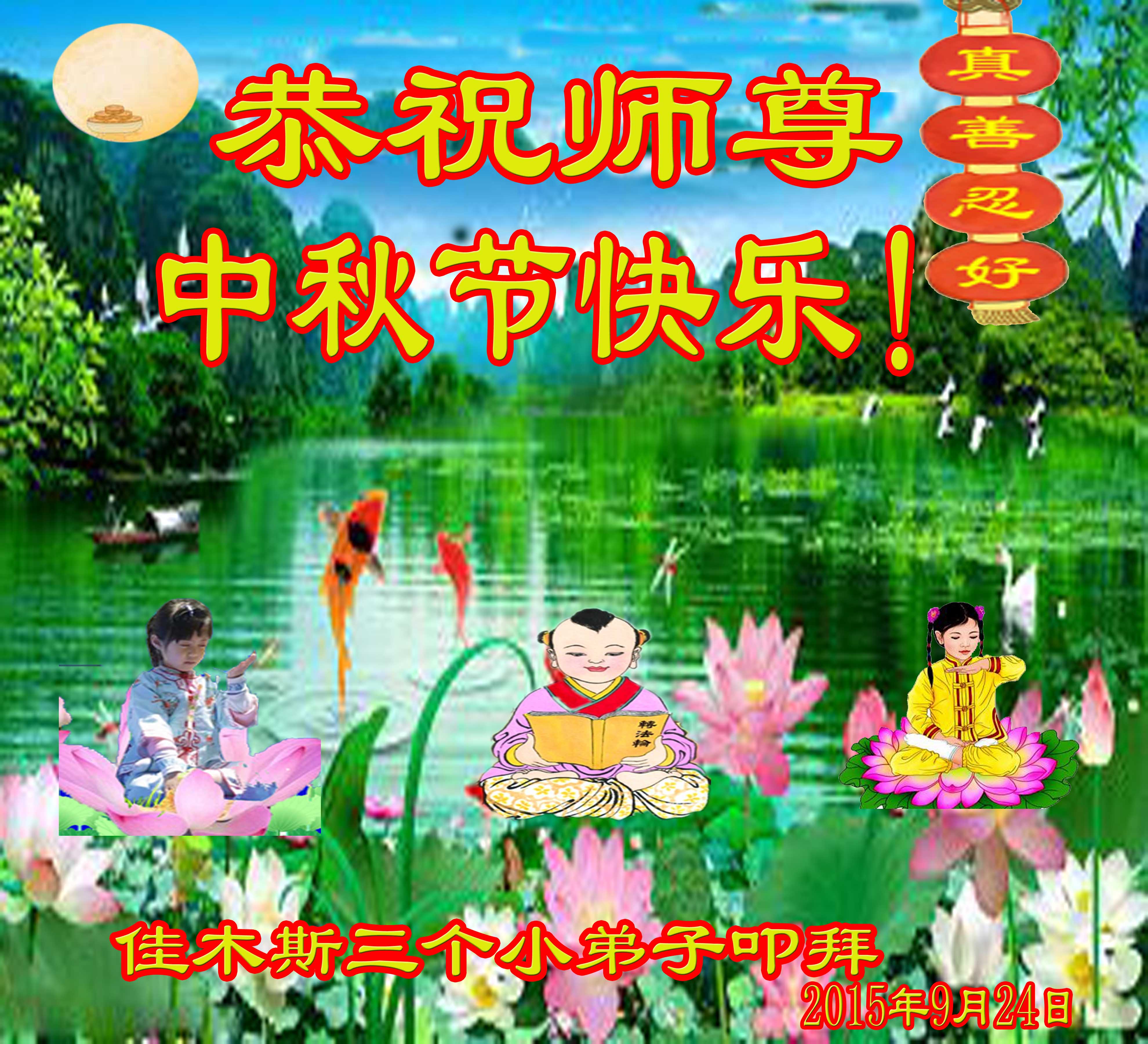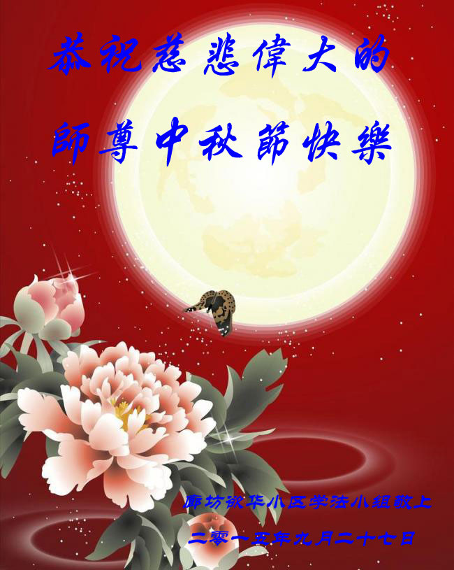 <英文版: http://en.minghui.org/html/articles/2015/10/1/153031.html>大陆百姓恭祝大法师父中秋快乐(54条)