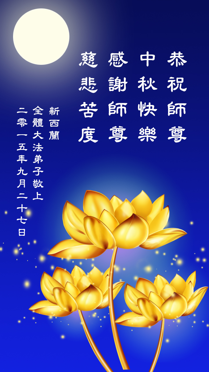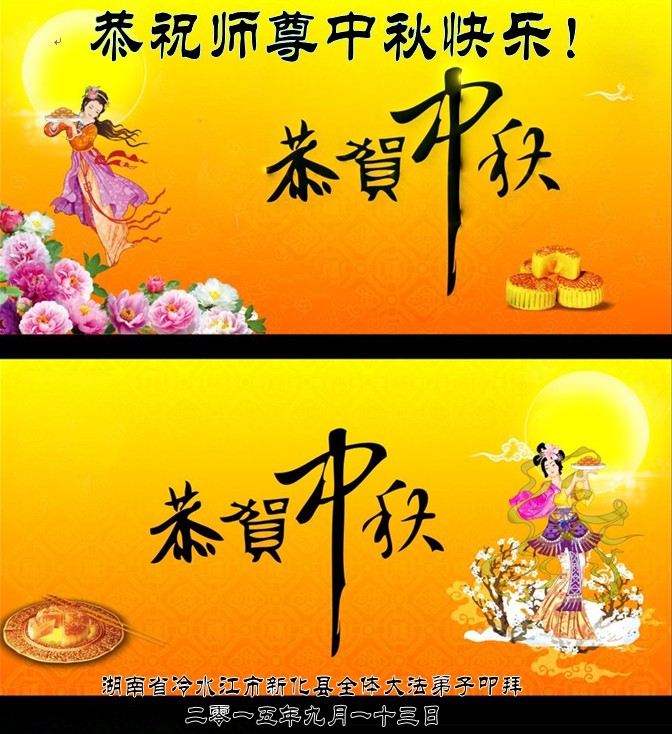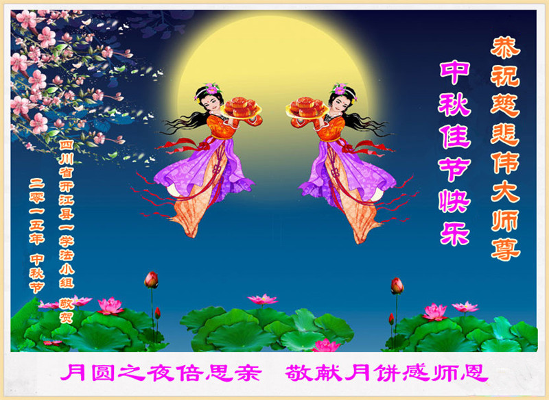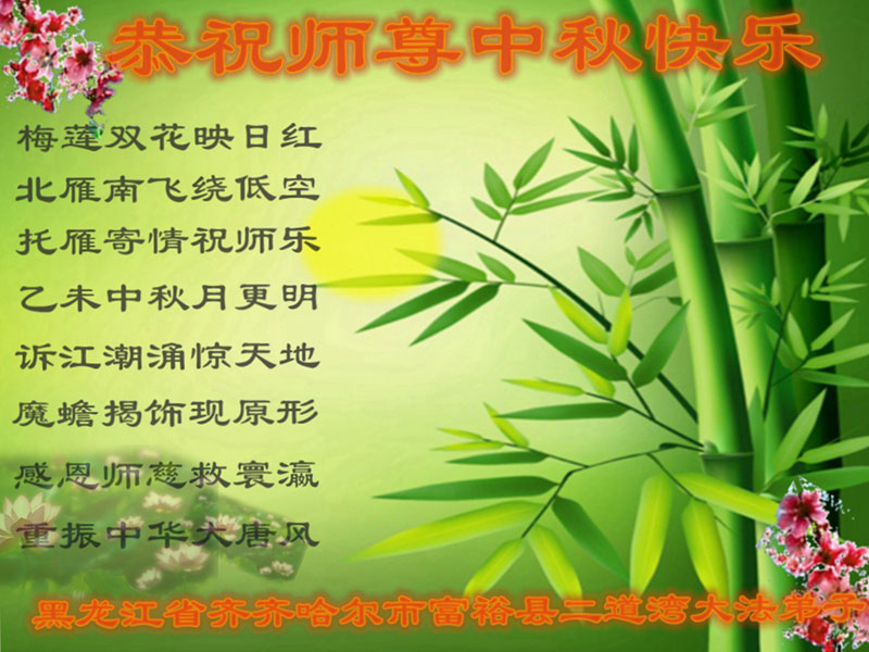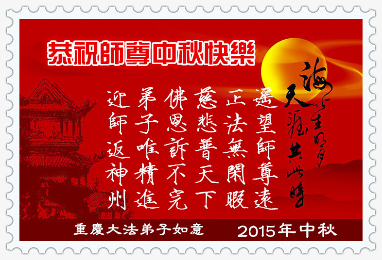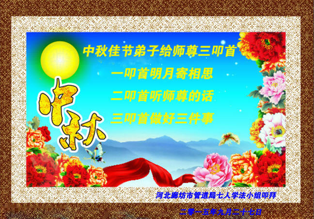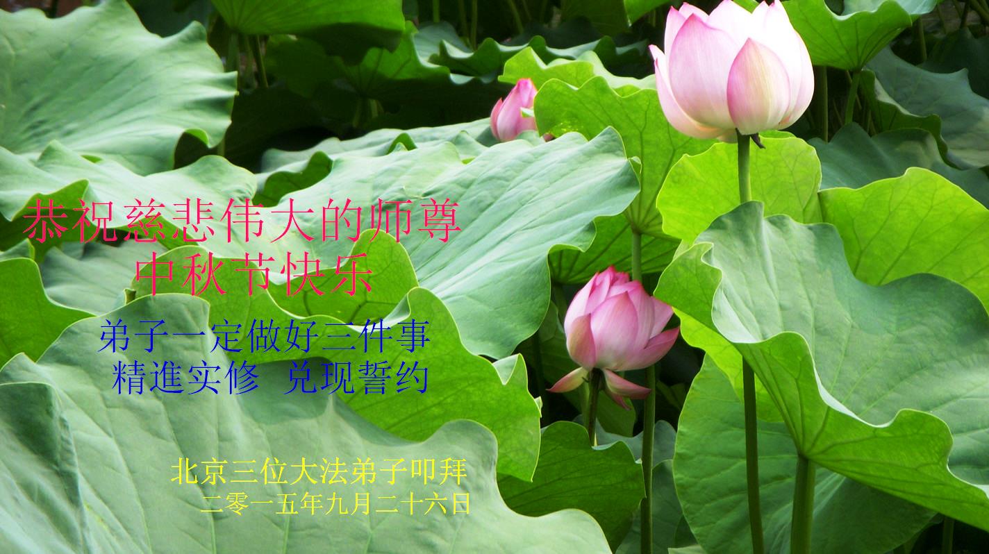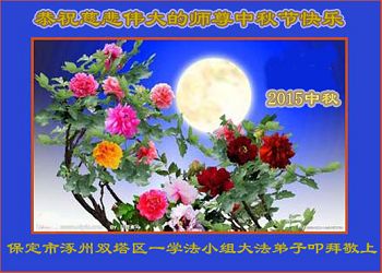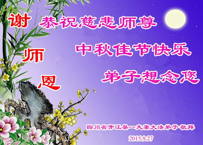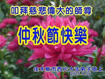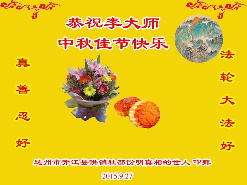 <英文版: http://en.minghui.org/html/articles/2015/10/1/153031.html>大陆百姓恭祝大法师父中秋快乐(54条)