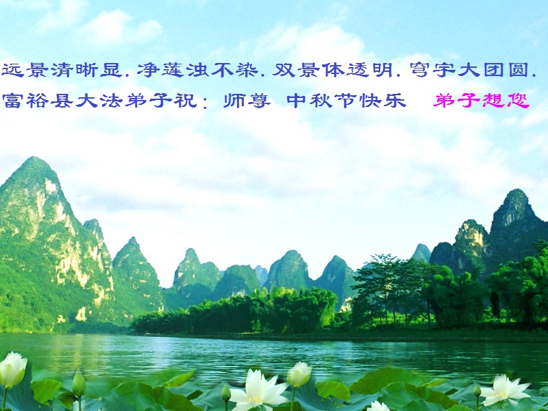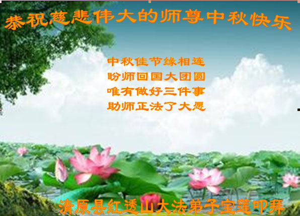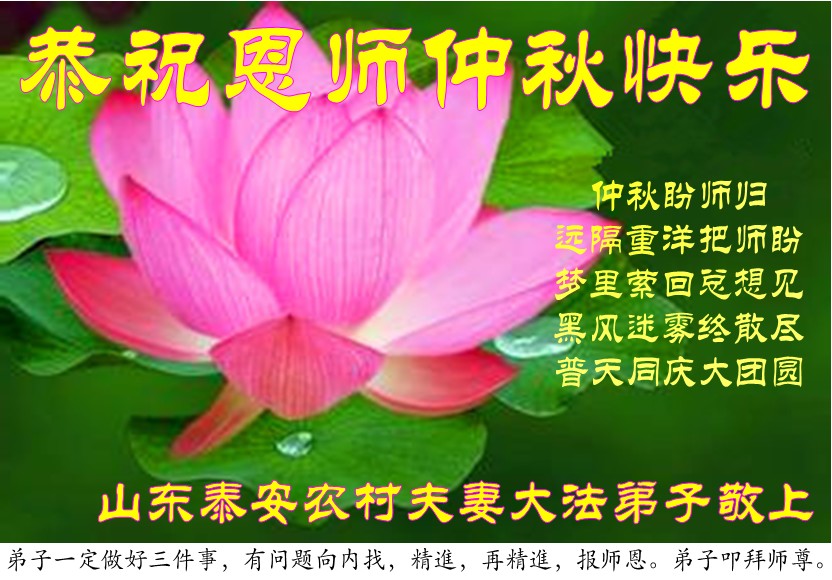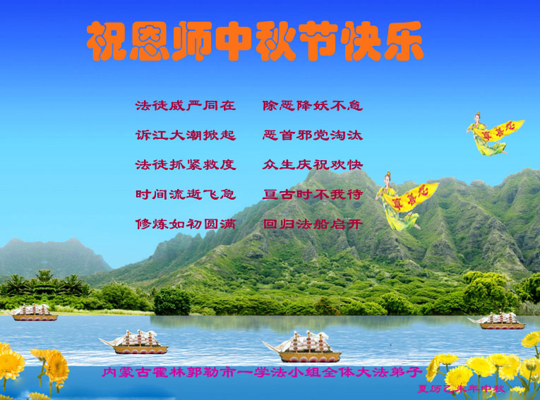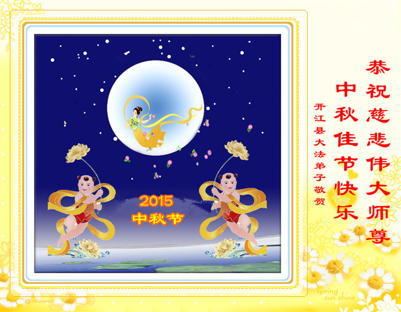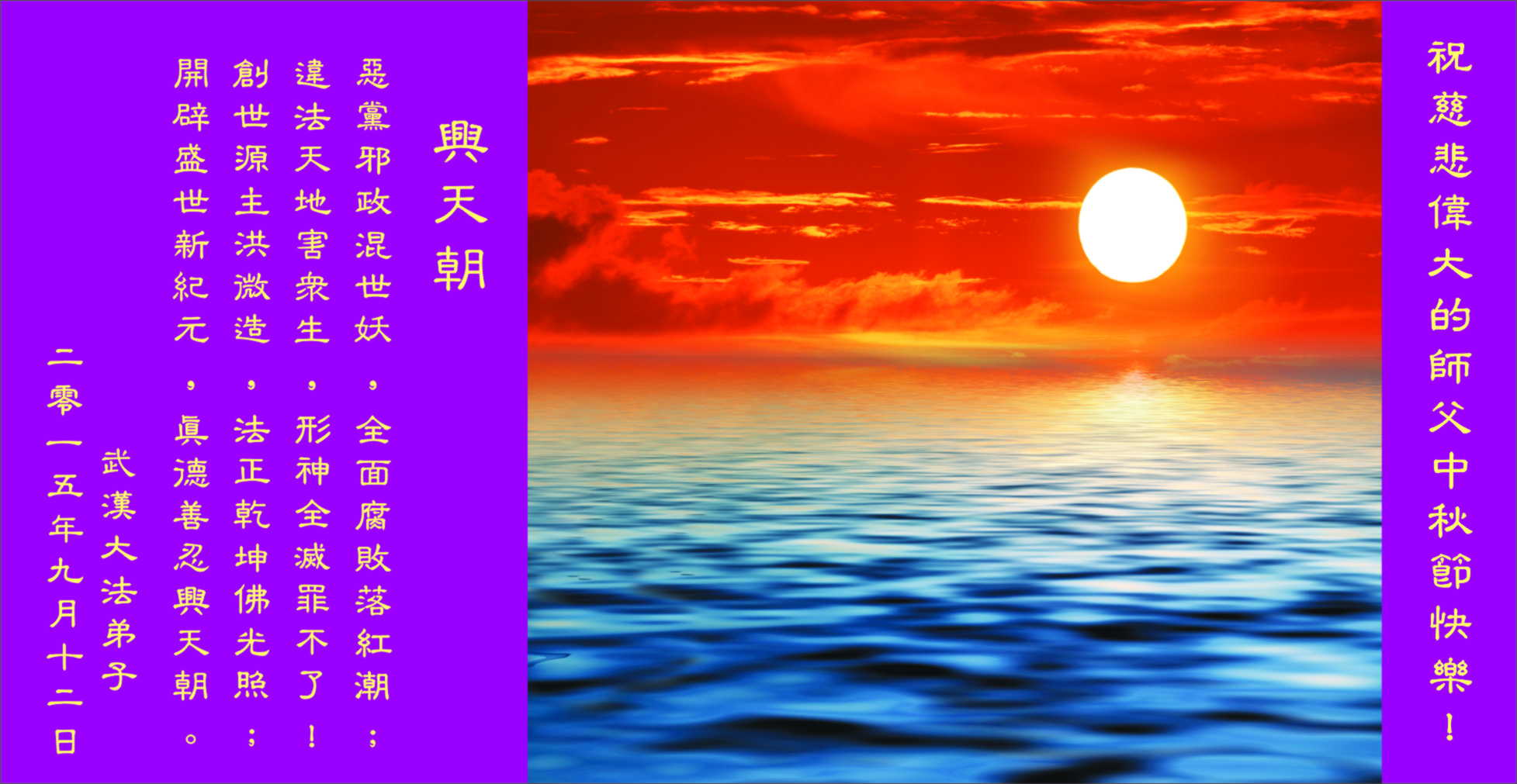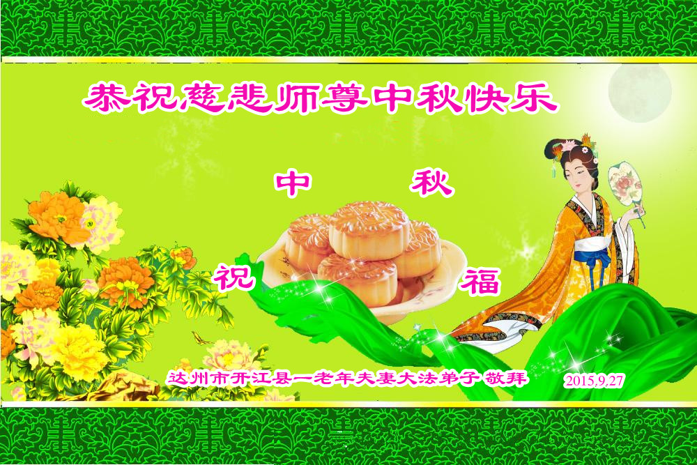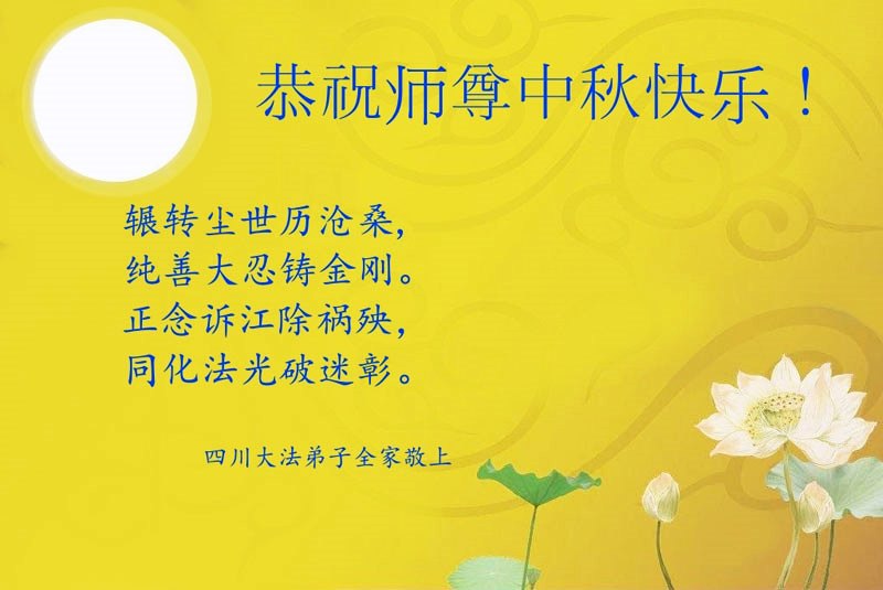 <英文版: http://en.minghui.org/html/articles/2015/10/1/153031.html>大陆百姓恭祝大法师父中秋快乐(54条)