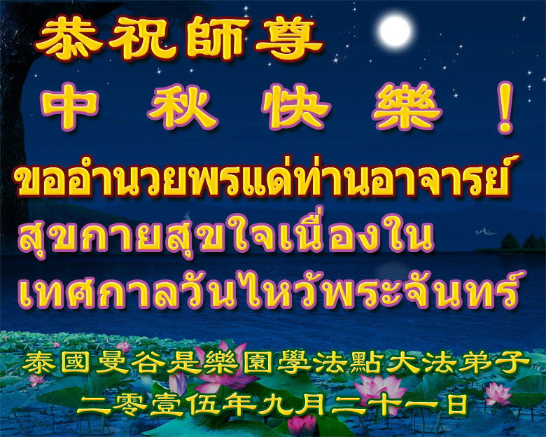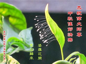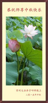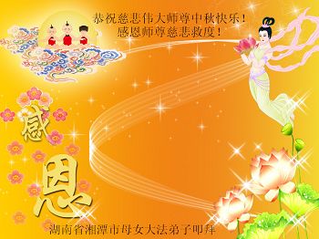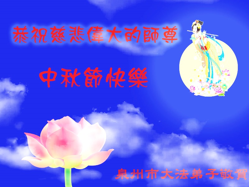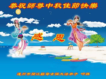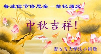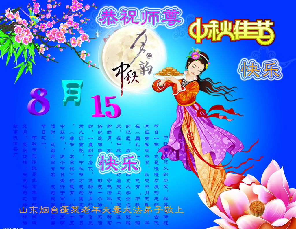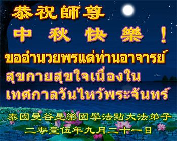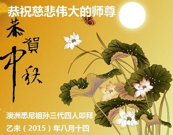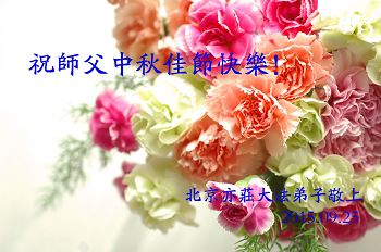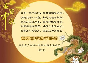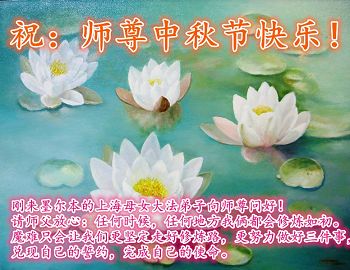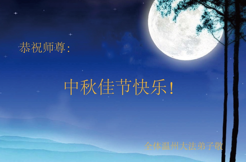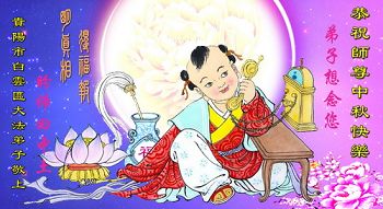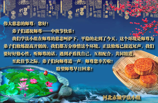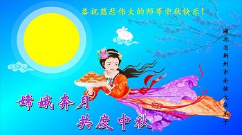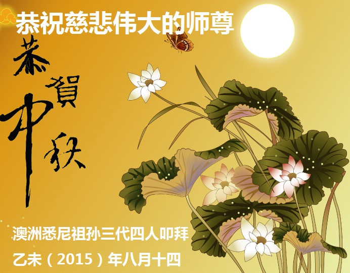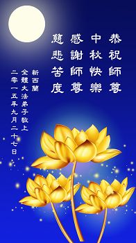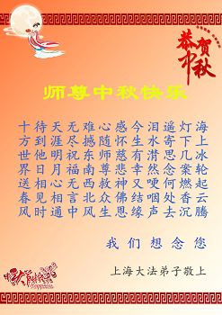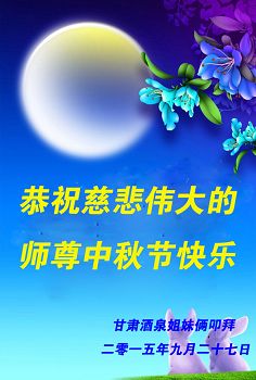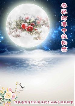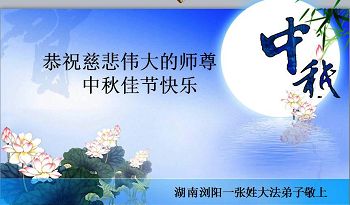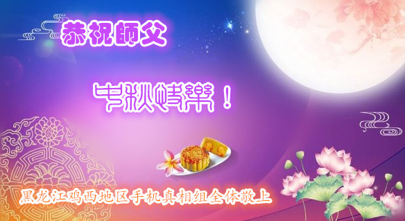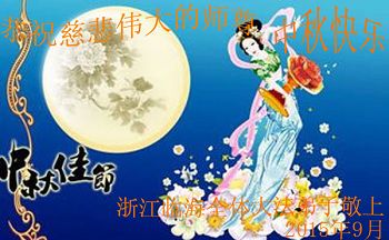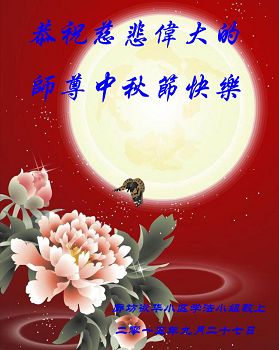 慈悲伟大的恩师:您辛苦了!值此中秋佳节到来之际,弟子恭祝恩师中秋节好!感恩师父对弟子及明真相的家人的无量慈悲呵护与救度!