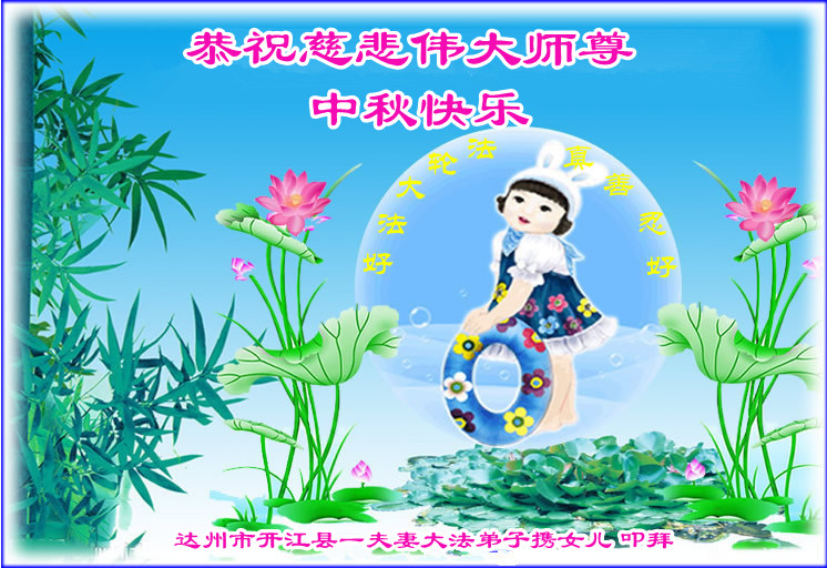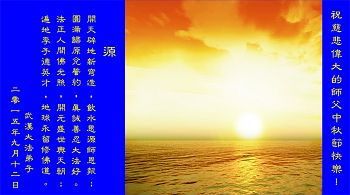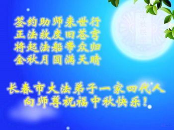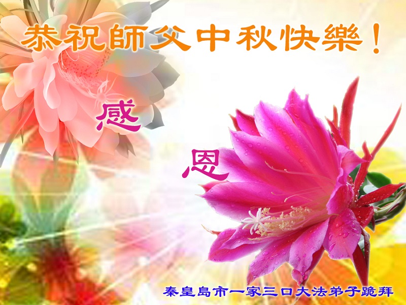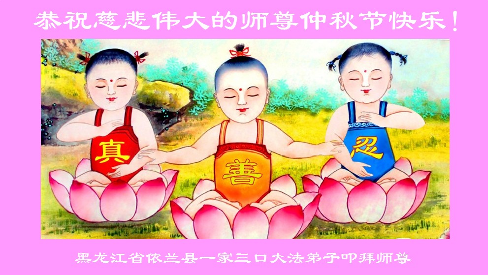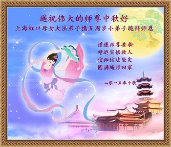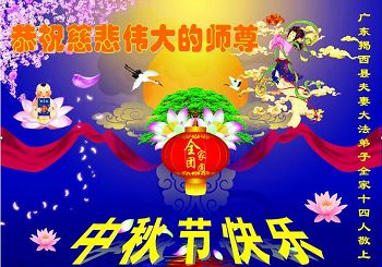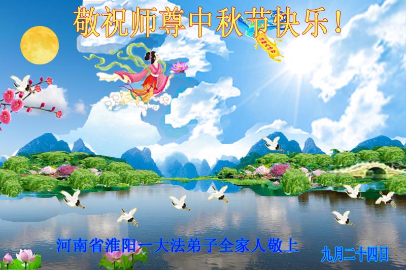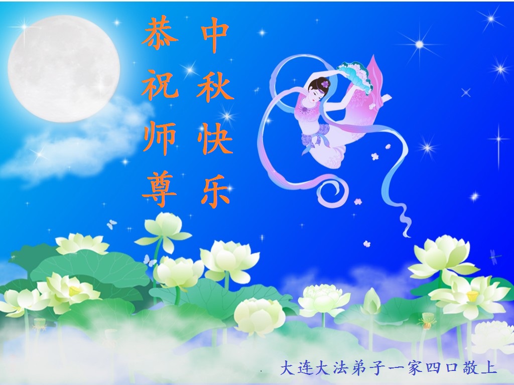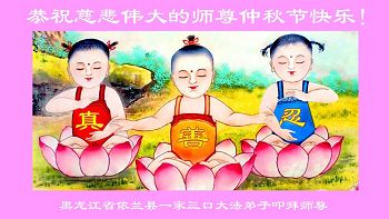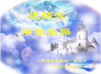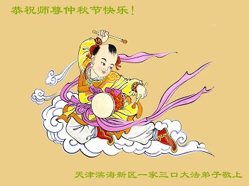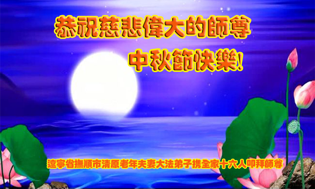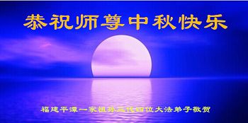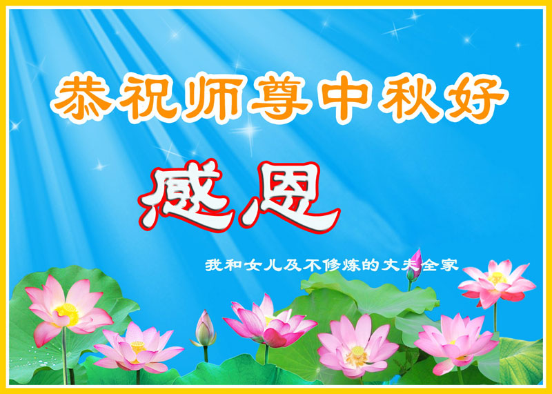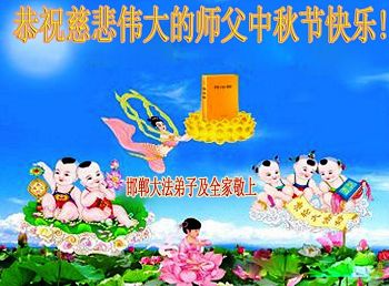 但我们都明白大法法理的博大精深,也知道您是来救人的。谢谢您在最危难时刻来救我们众生,我们全家人向您叩拜:恭祝师尊中秋节日快乐!