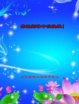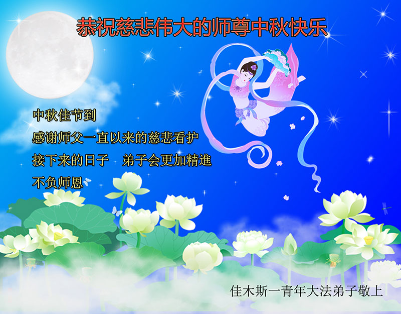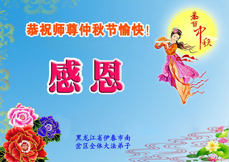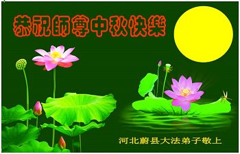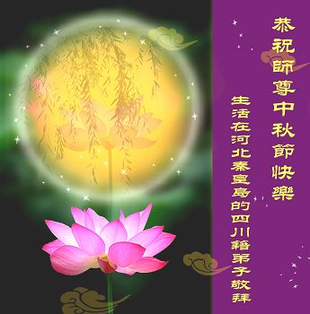 我家亲人修炼大法,我从小就相信法轮大法好!真、善、忍好!因此,我一直得到师父的护佑,工作顺利,家庭幸福,事事如意!在中秋佳节来临之际,恭贺慈悲伟大的师父中秋节快乐!
