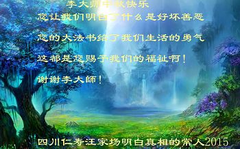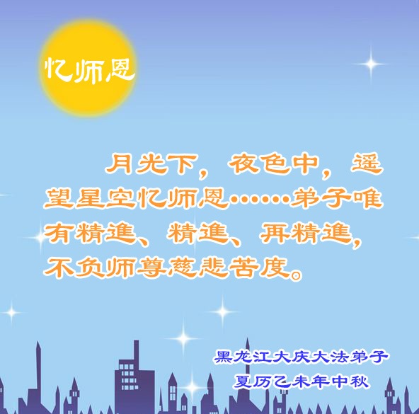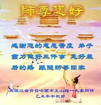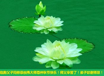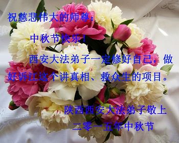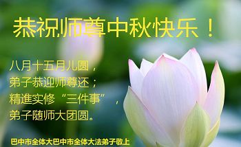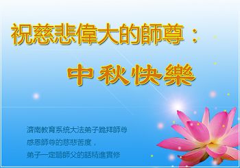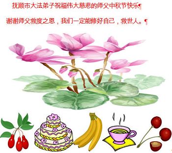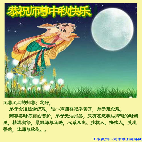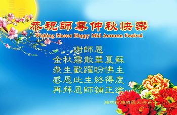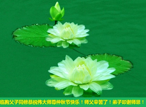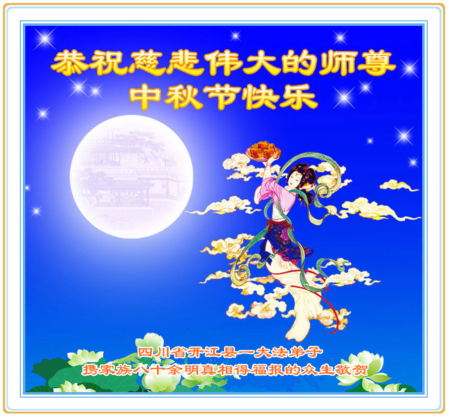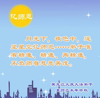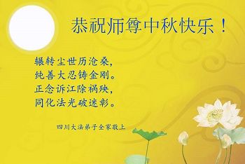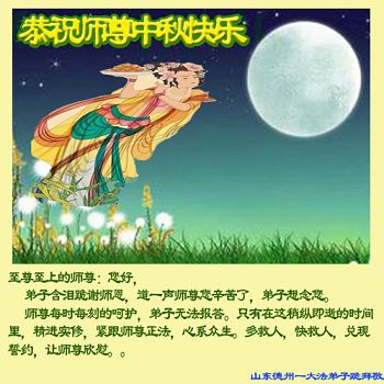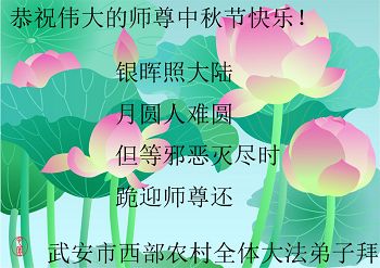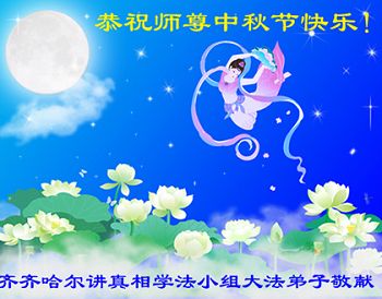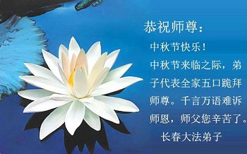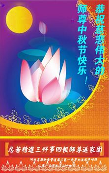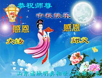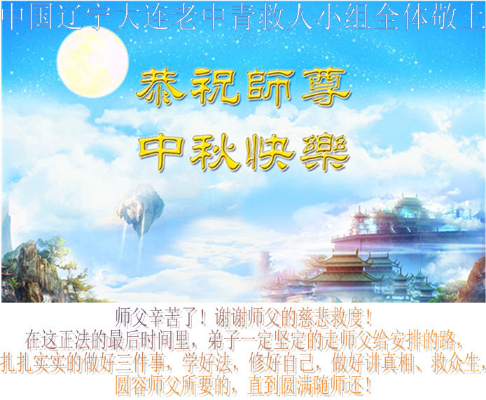 我们心底真心感谢师尊的救命之恩!我们代表所有大法弟子的家属和明真相的世人祝师父中秋快乐!再次跪拜谢救命之恩!