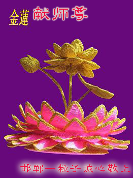 尊敬的李大师您好!穷尽人类的语言,也无法表达我们内心的感恩!您的无量慈悲,像甘露一样撒遍人世间每一个角落,每一个法轮功弟子像天使一般,有着大义凛然的高贵品质,他们用自己的言行,向世人传递着法轮大法的美好和神奇,他们是使人类道德回升的源泉!是生命得救的希望!跪谢伟大慈悲的李大师!