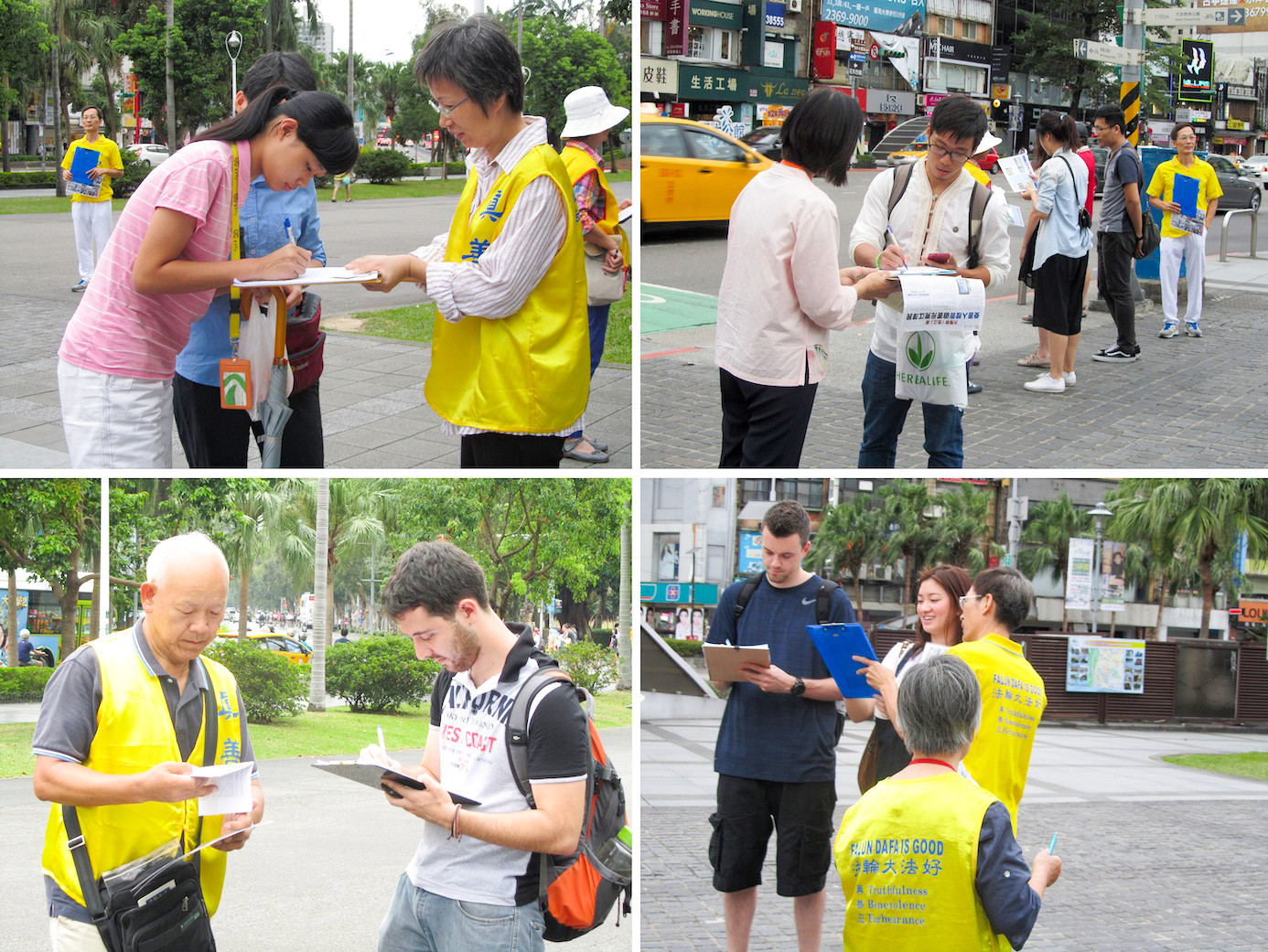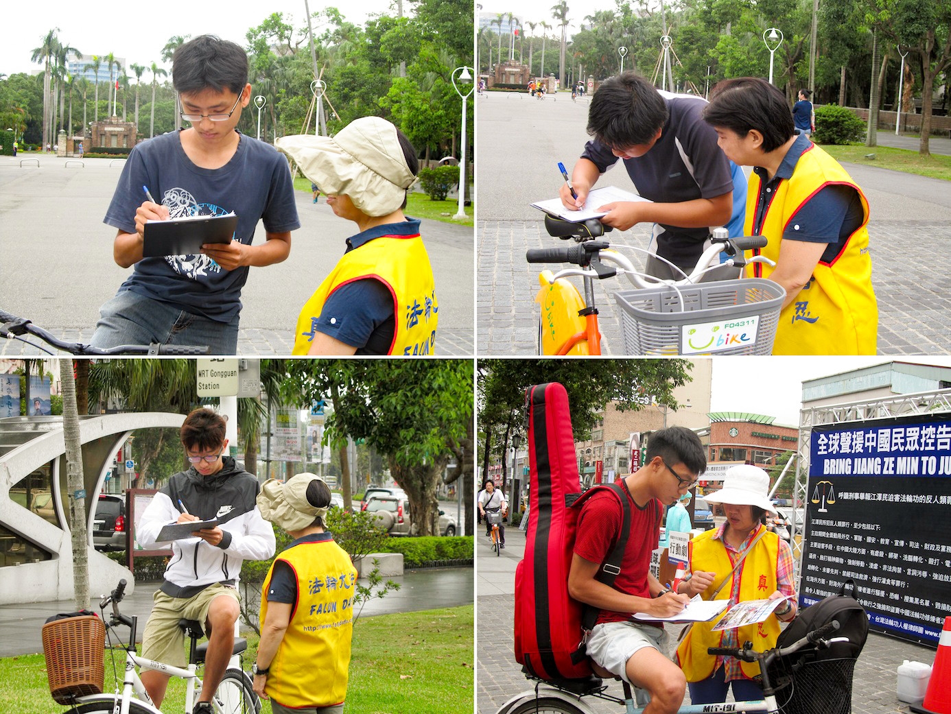 图:民众不分国籍、男女,踊跃签名声援诉江大潮。