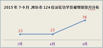 ![]() 2015年7-9月份明慧网报道的案例中,潍坊市124位法轮功学员被绑架 |