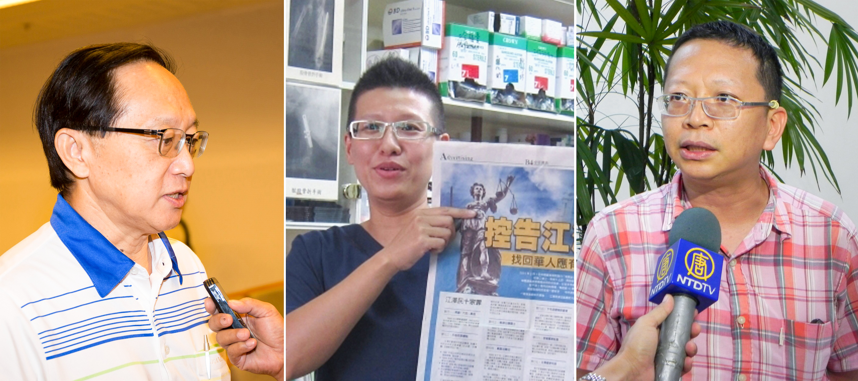 律师、企业团体也发起举报联署,希望能将迫害的元凶江泽民绳之以法。台湾著名的人权律师曾锦源(左)、中华民国模具技术发展学会理事长简佑泽(中)、中华音乐文化教育基金会秘书长翁崇伟(右)